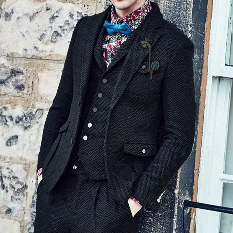 Костюм мужской зимний твидовый в стиле ретро, пиджак, брюки, жилет