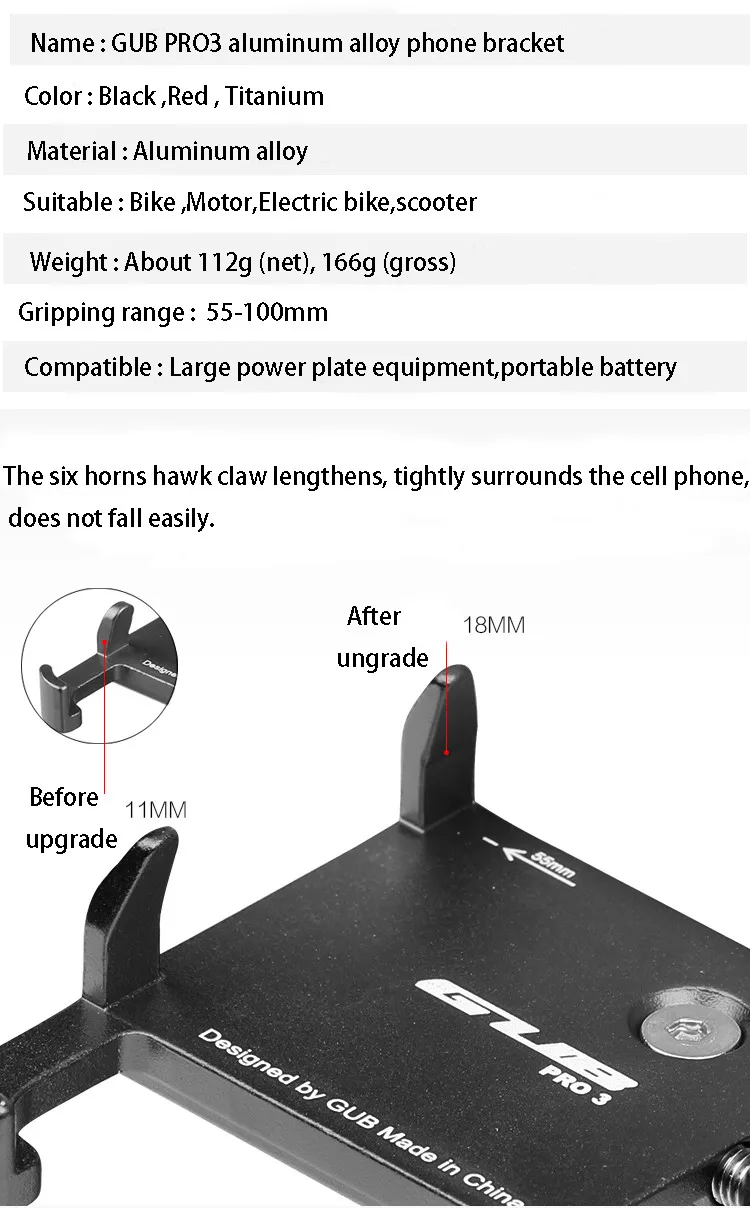 Кронштейн для крепления на руль велосипеда GUB PRO 3 2, регулируемая подставка для телефона, нескользящий велосипедный держатель для телефона 3,5-6,2 дюймов Bicicleta