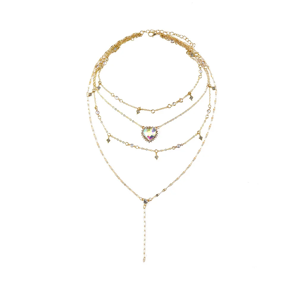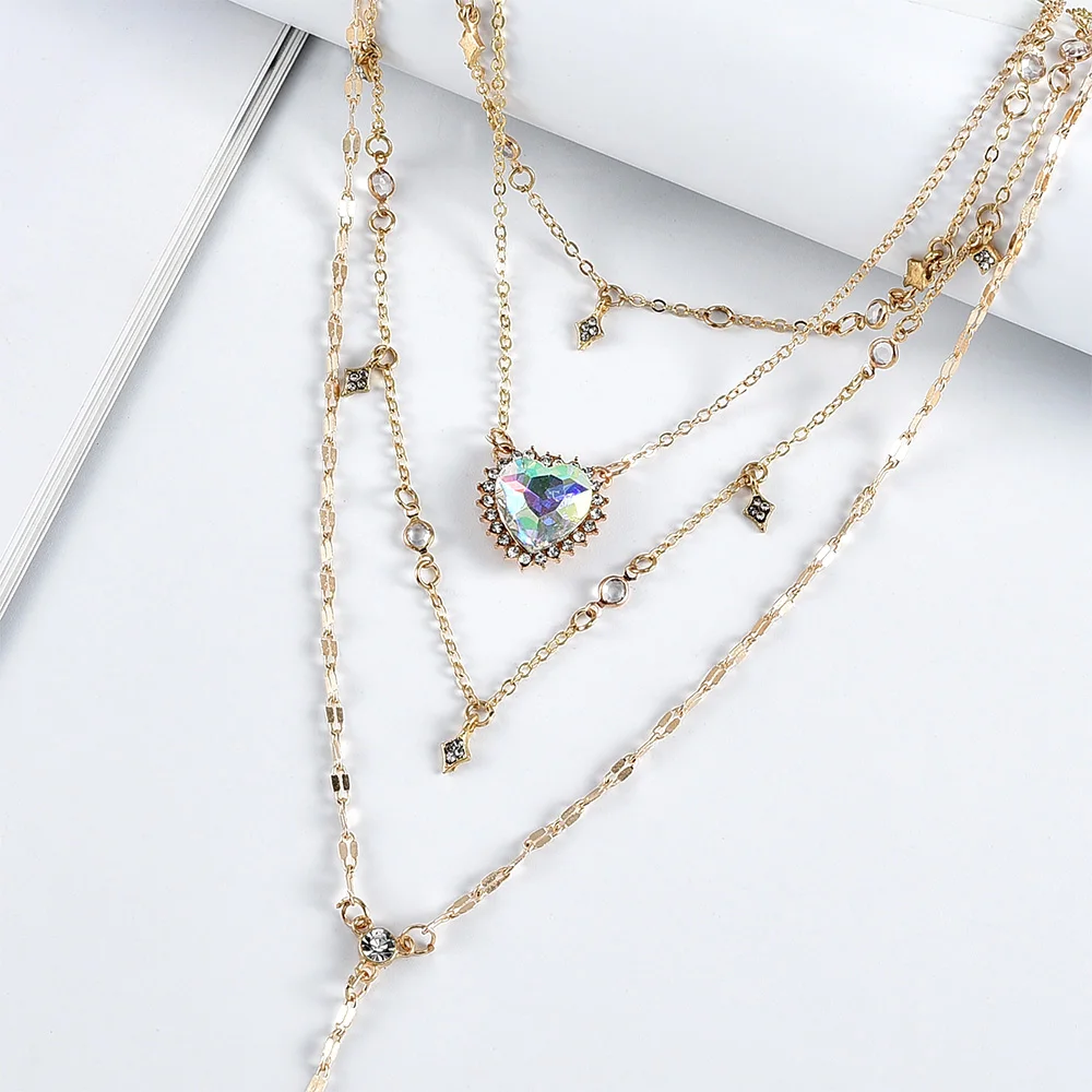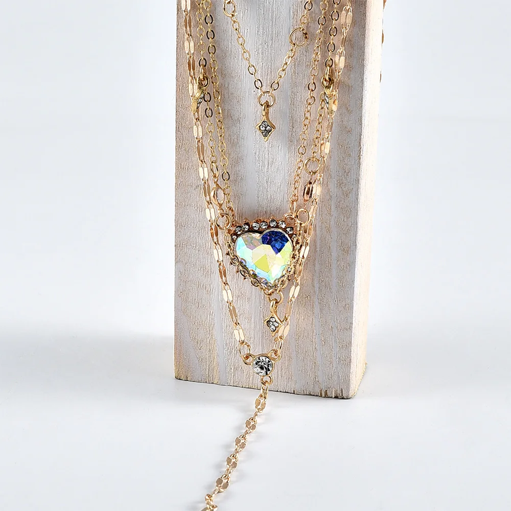 Женское винтажное золотое ожерелье в стиле бохо, подарочное Ювелирное Украшение в форме сердца с кристаллами и звездами, многослойное ожерелье с подвеской