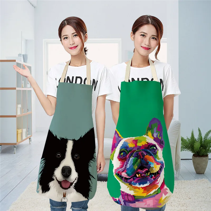 Кухонные фартуки с мультяшным рисунком собаки для приготовления пищи хлопковые льняные фартуки взрослые нагрудники без рукавов аксессуары для уборки дома