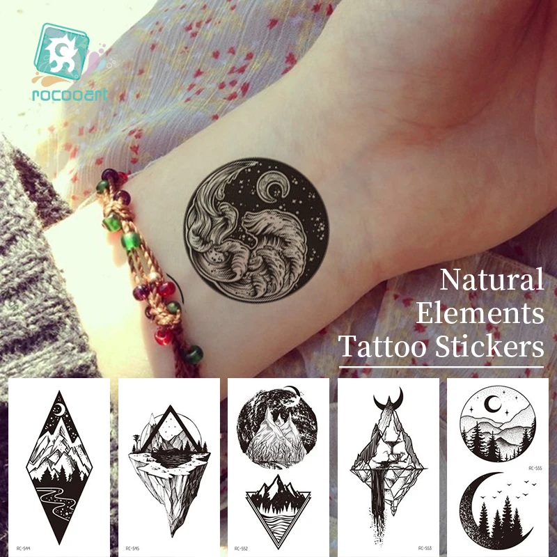 Водостойкая Временная тату-наклейка Rocooart, натуральные элементы, темная серия, черная, маленького размера, тату на руку, искусственная тату для мужчин и женщин