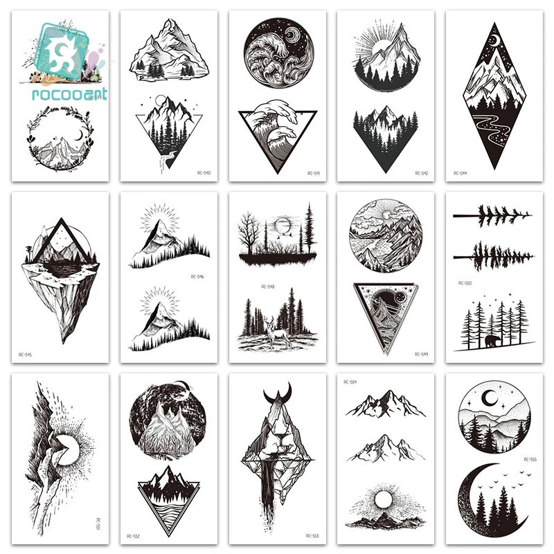 1 лист Временная водостойкая татуировка наклейки горы дерево поддел...