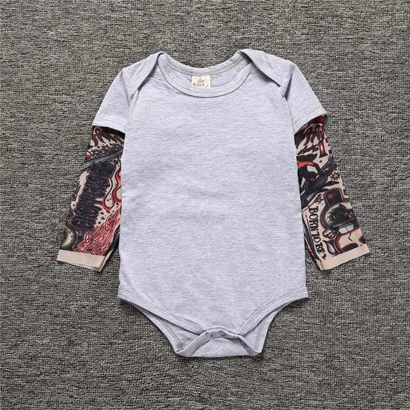 Боди детское с принтом татуировок, хлопок, длинный рукав, 6 мес.-24 мес.