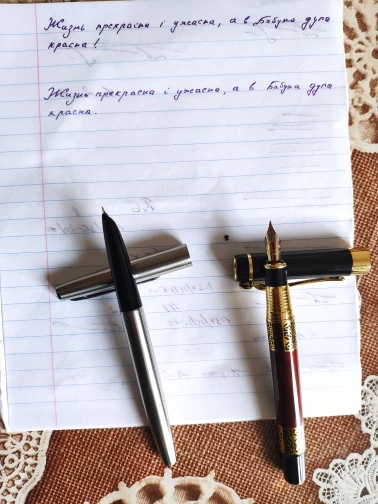 Зовнішній вигляд чудовий. Ручка нормального розміру. Капсула для чорнила стандартна. Пише через раз, навіть можна сказати херово, буду надіятися що розпишеться. Опис згодом доповню.
