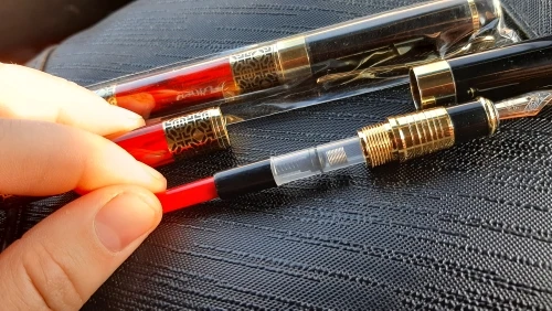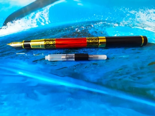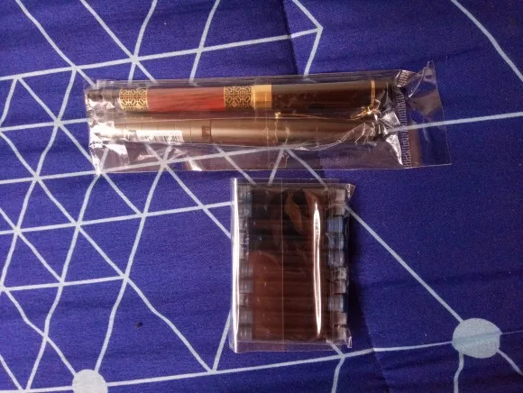 Долгая доставка, полтора месяца. Не отслеживается. Качеством доволен: пишет мягко, при транспортировке ничего не пострадало. Обычные картриджи для перьевых ручек подходят