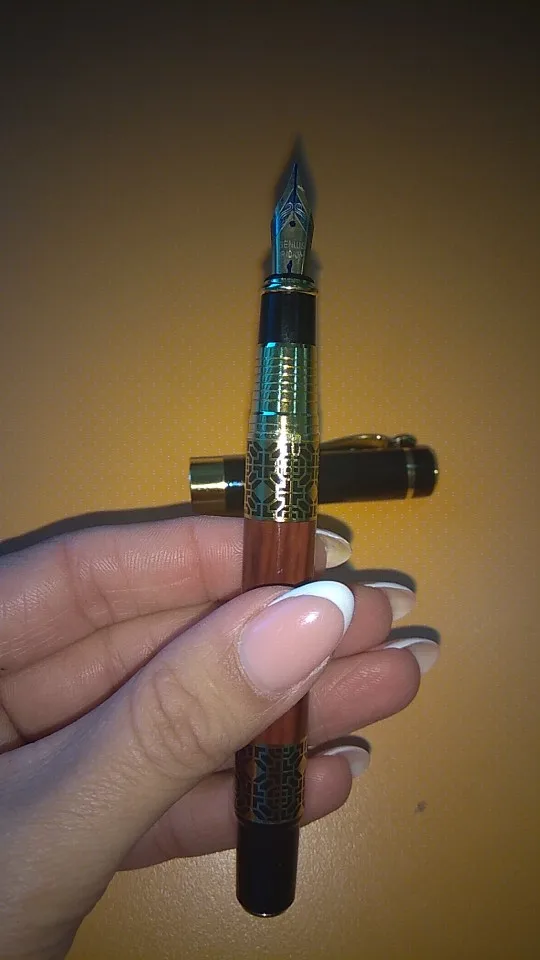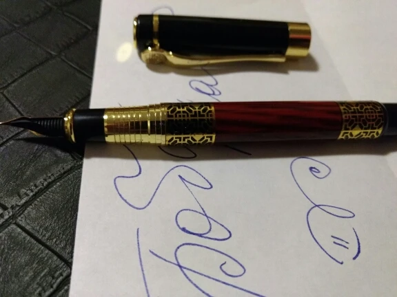 Ручка очень красивая, увесистая, выглядит добротно и качественно. Но писать не пробовала пока, так как нет чернил.
