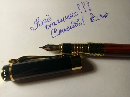 Ручка понравилась. Доставлена быстро. Спасибо продавцу. Одновременно с ручкой заказывал чернильные стержни. Предварительно написал продавцу вопрос в личном сообщении, подходят ли стержни к выбранной ручке. Продавец сказал да. Стержни, которые мне прислали - к ручке не подходят)))) Продавцу нужно быть внимательнее.