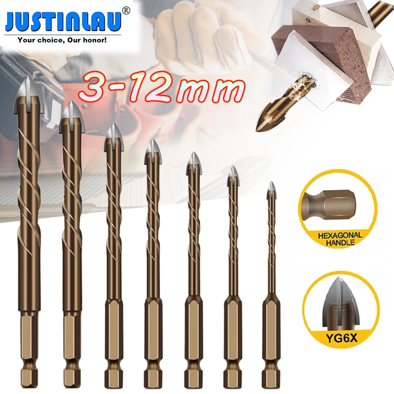JUSTINLAU удлиненные крестовые шестигранные насадки для плитки стеклянные керамические бетонные отверстия Открыватель сплав треугольное сверло Размер 345681012 мм
