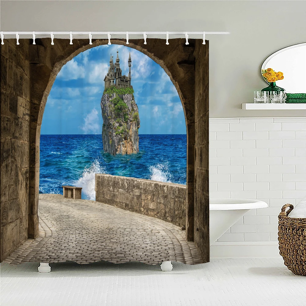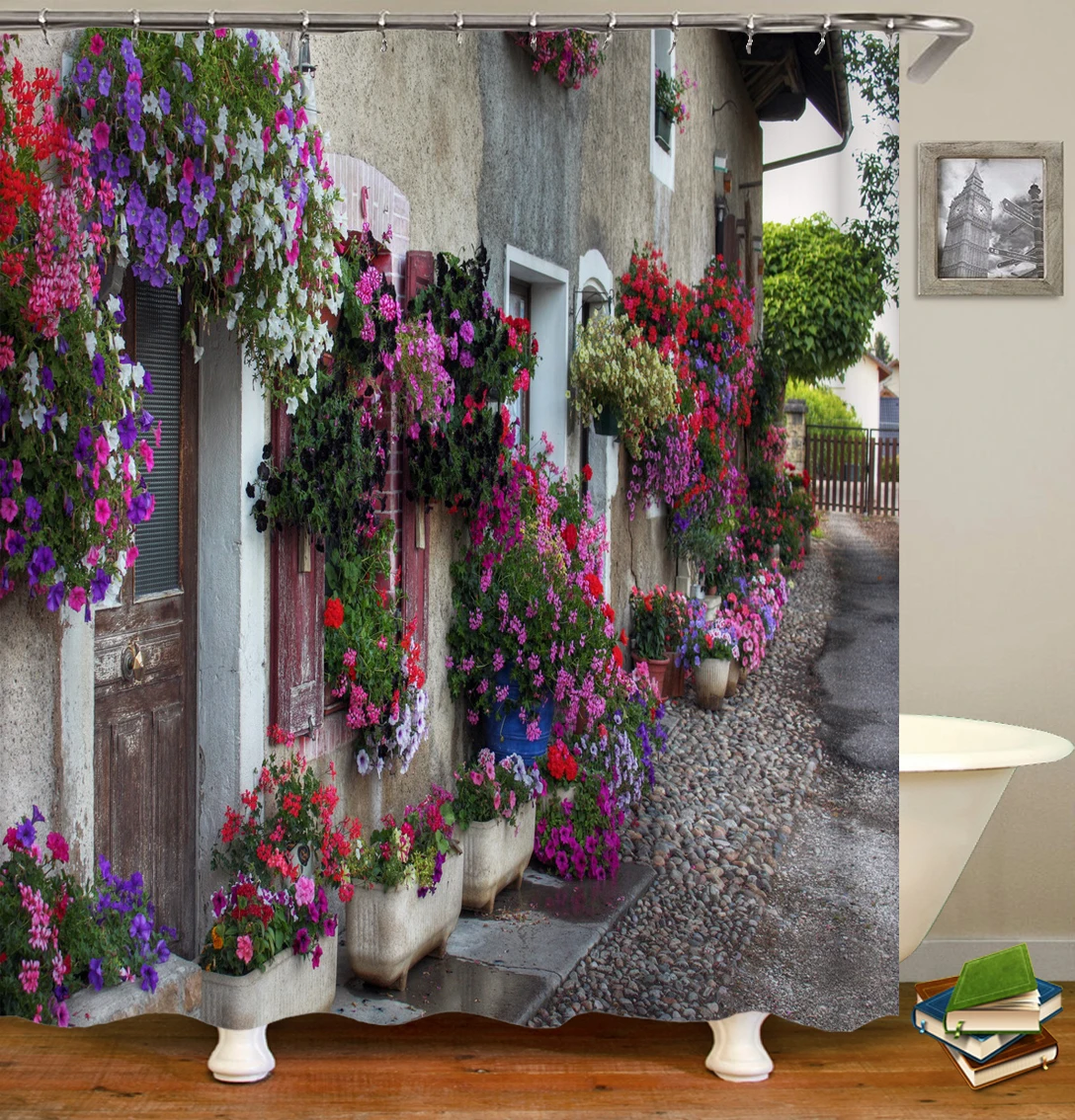 Деревенская занавеска для душа, двери старого каменного дома с французскими рамками, детали в сельской местности, Европейская Ванна из ткани