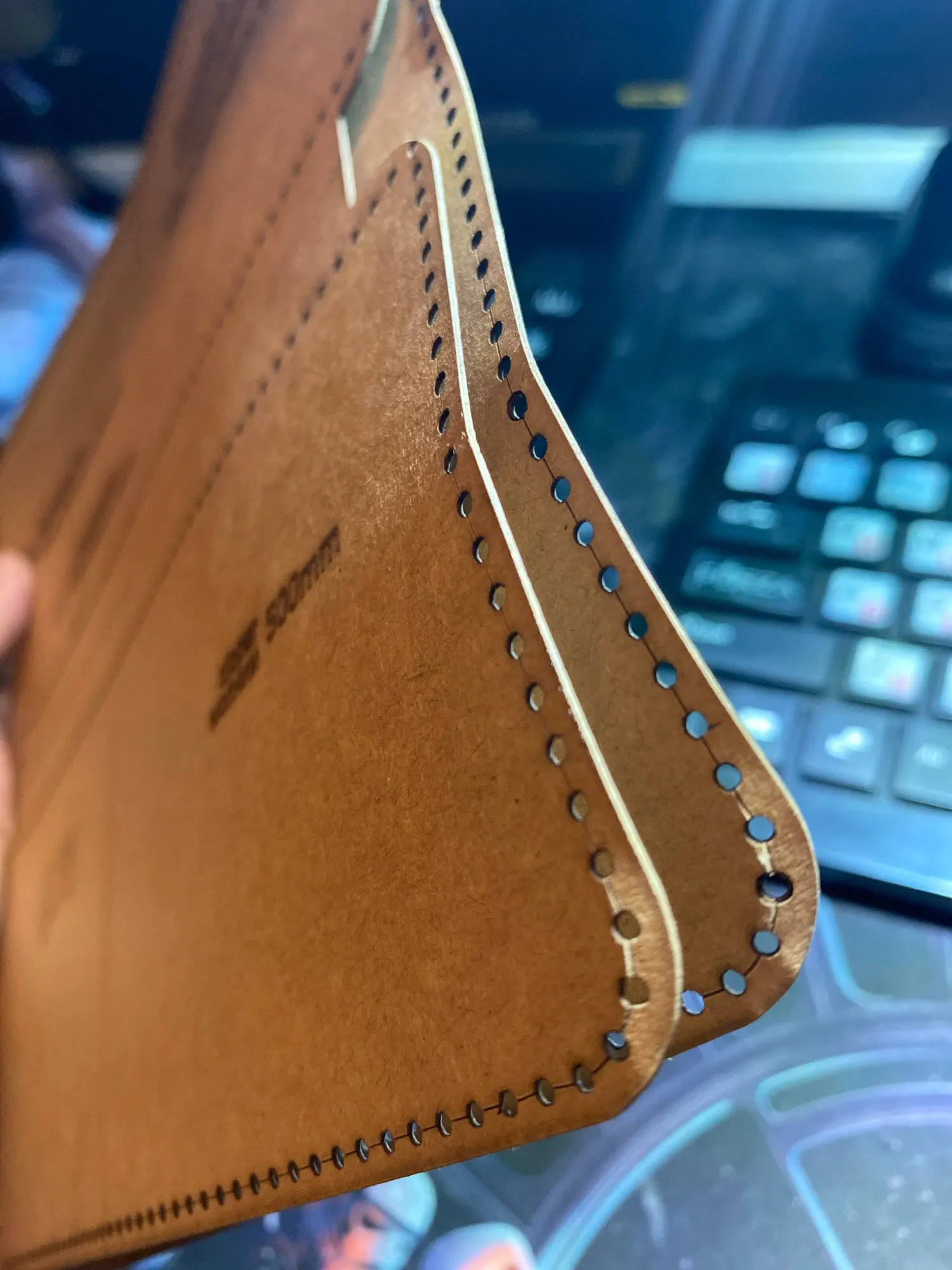 3. Установите положение карты на внутреннюю кожу A02, прострочите нижнюю часть положения карты и протрите отверстия с обеих сторон без прошивки