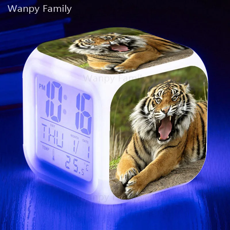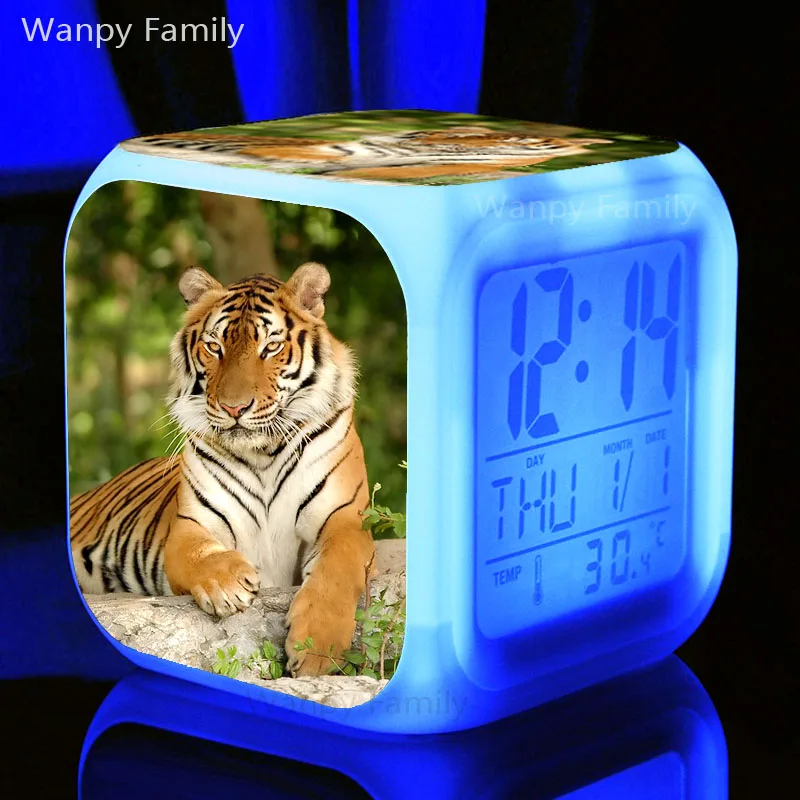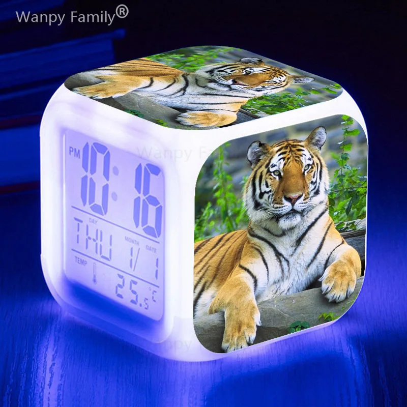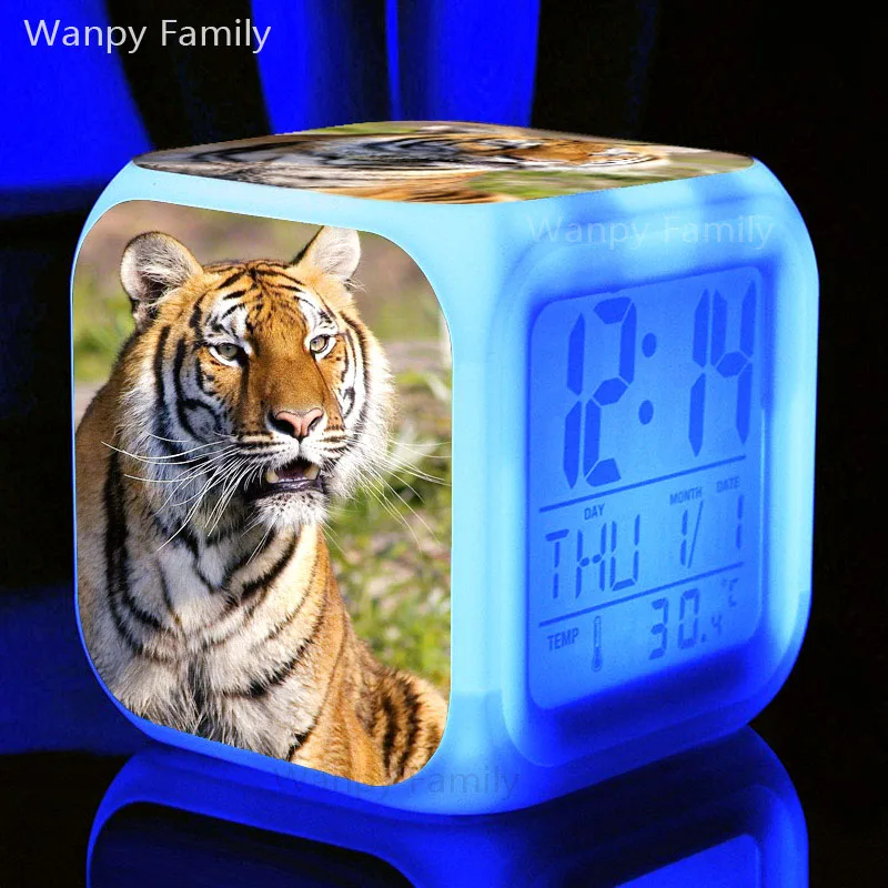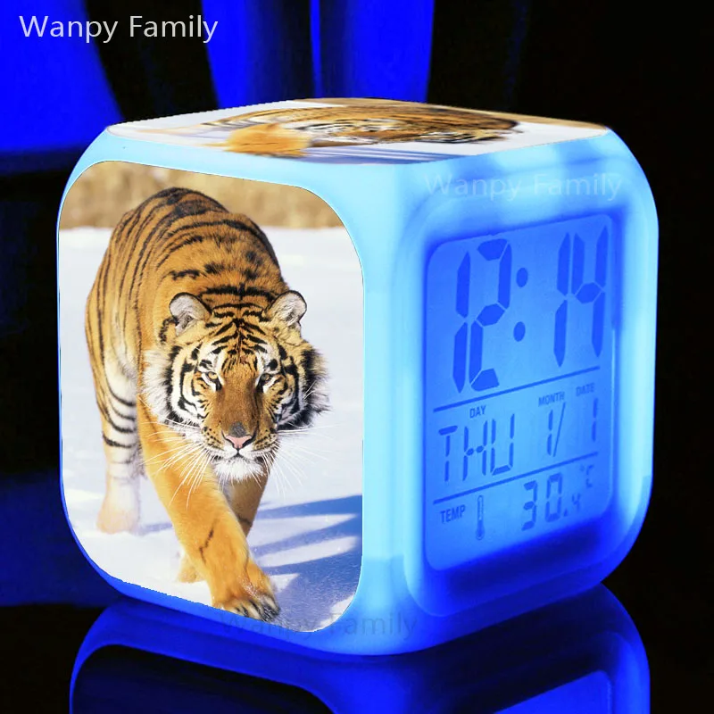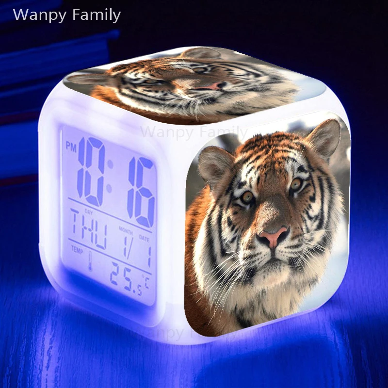 Детские подарки, тигровый будильник, 7 цветов, светящийся светодиод...