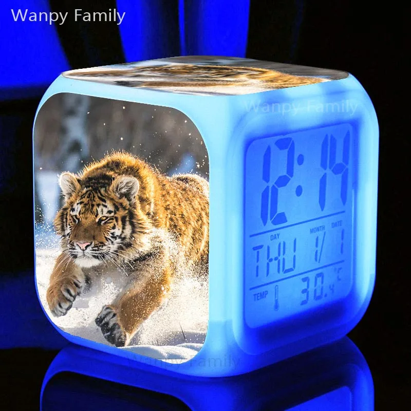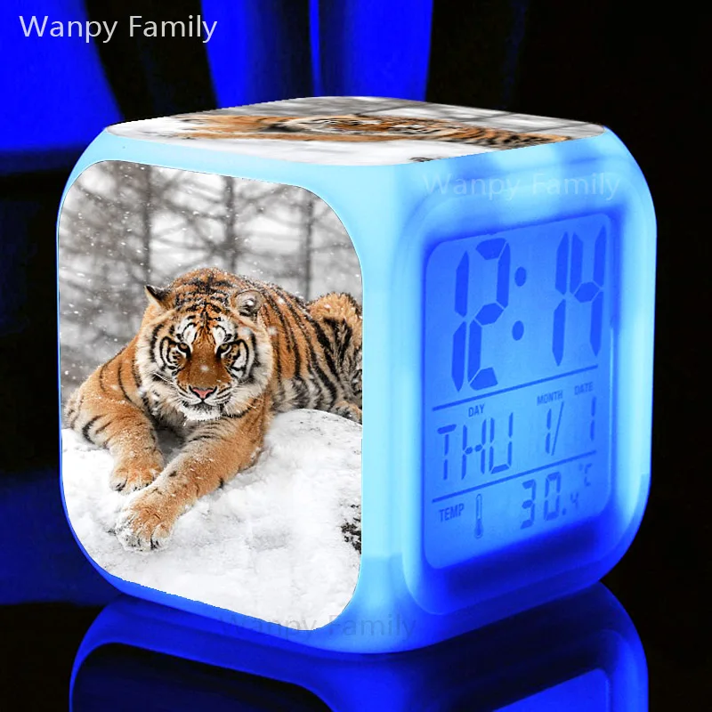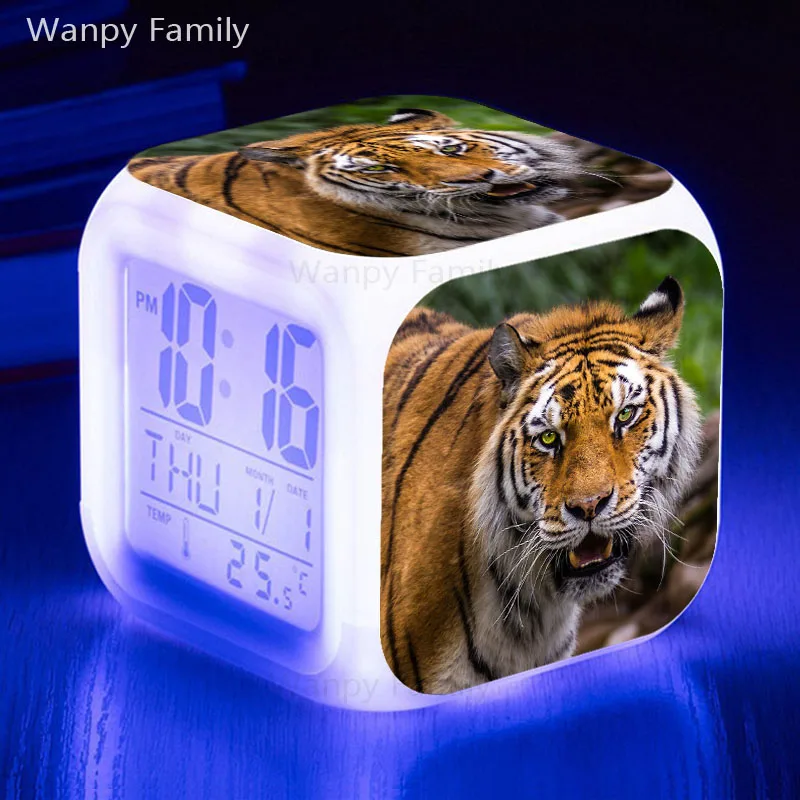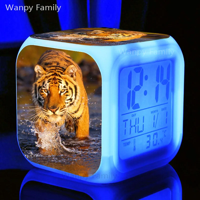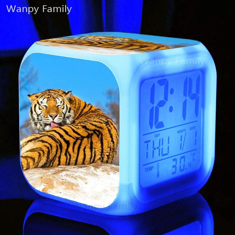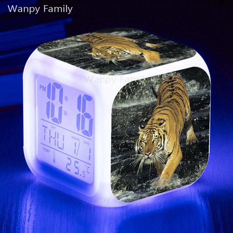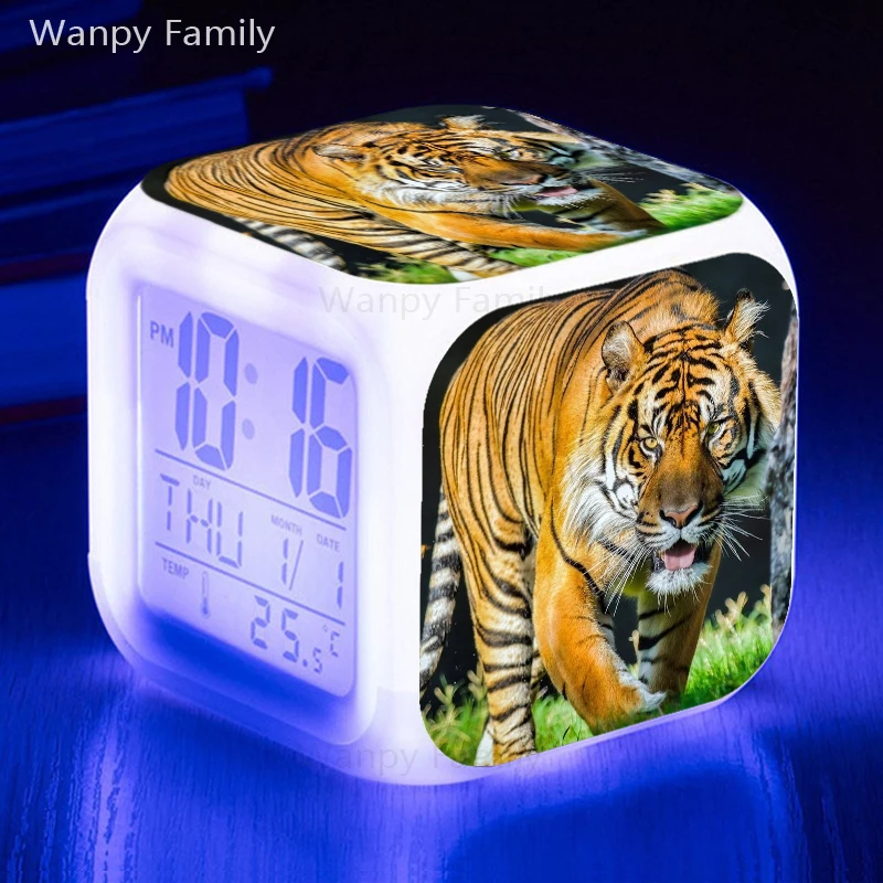 Детские подарки, тигровый будильник, 7 цветов, светящийся светодиод...