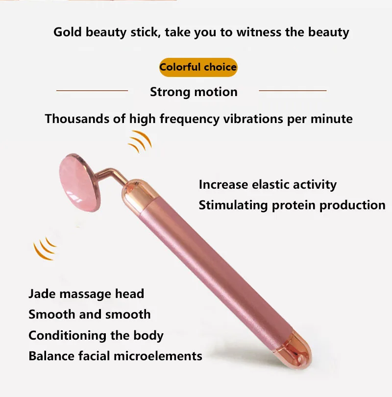 Электрический Вибрационный ролик из Натурального Розового Кварца, золотой ролик для красоты лица, подтяжка лица, Нефритовый камень, массажный ролик для лица