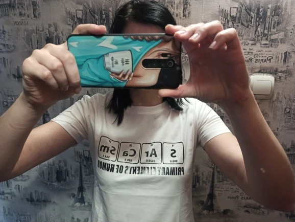 Хорошая футболка, дошла за 2 недели до мск. Заметила маленький чёрный след в стороне от принта, но он еле заметен. В остальном нареканий нет.