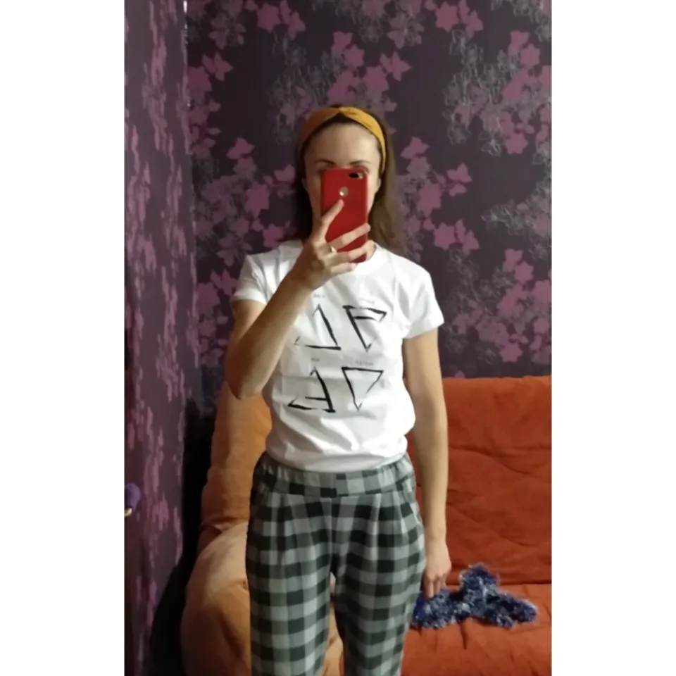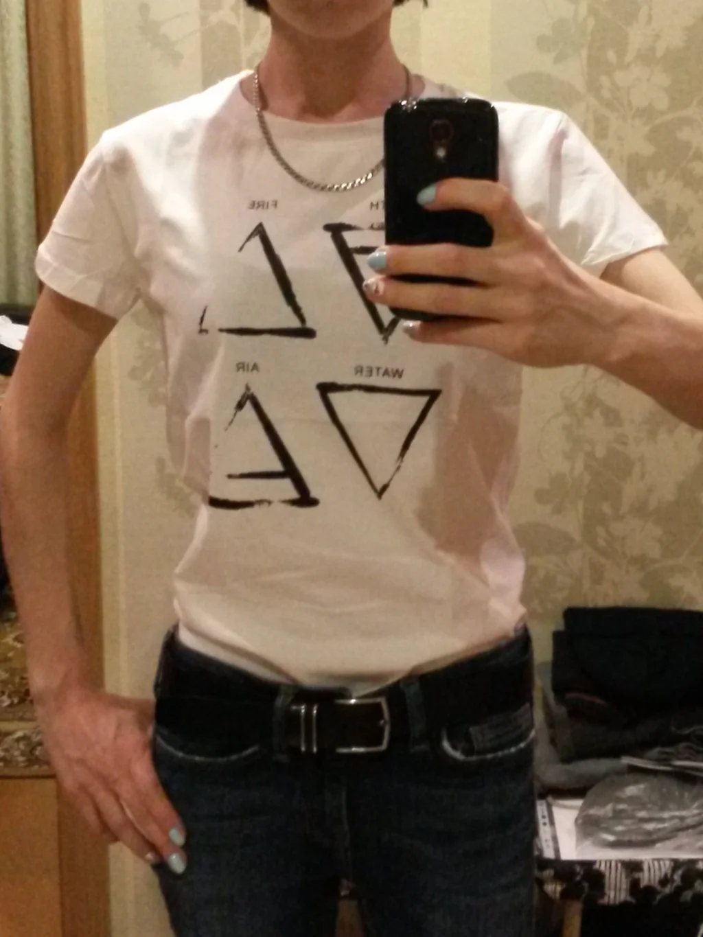 Классная футболка, качество хорошее. Рисунок - наклейка, но стирку выдержал нормально. Покупала для дома, но и на выход очень доже пойдёт
