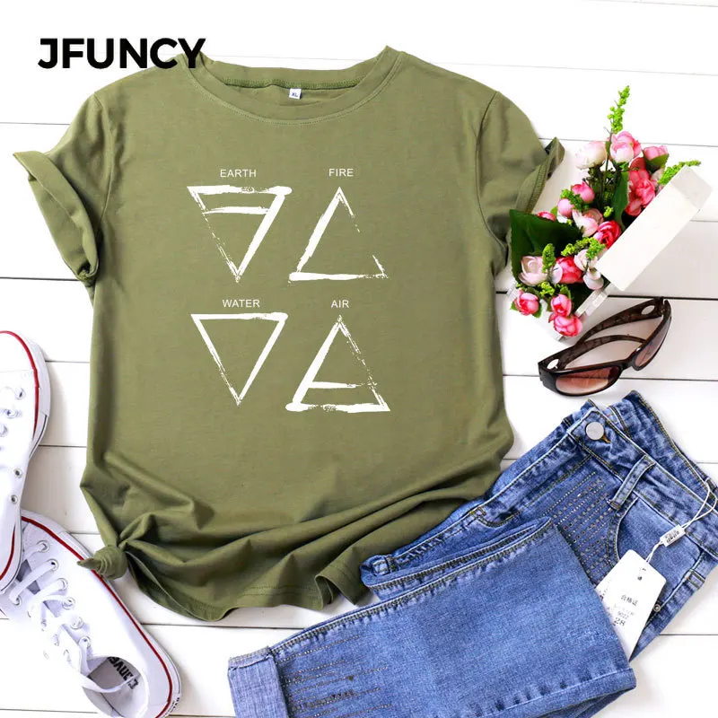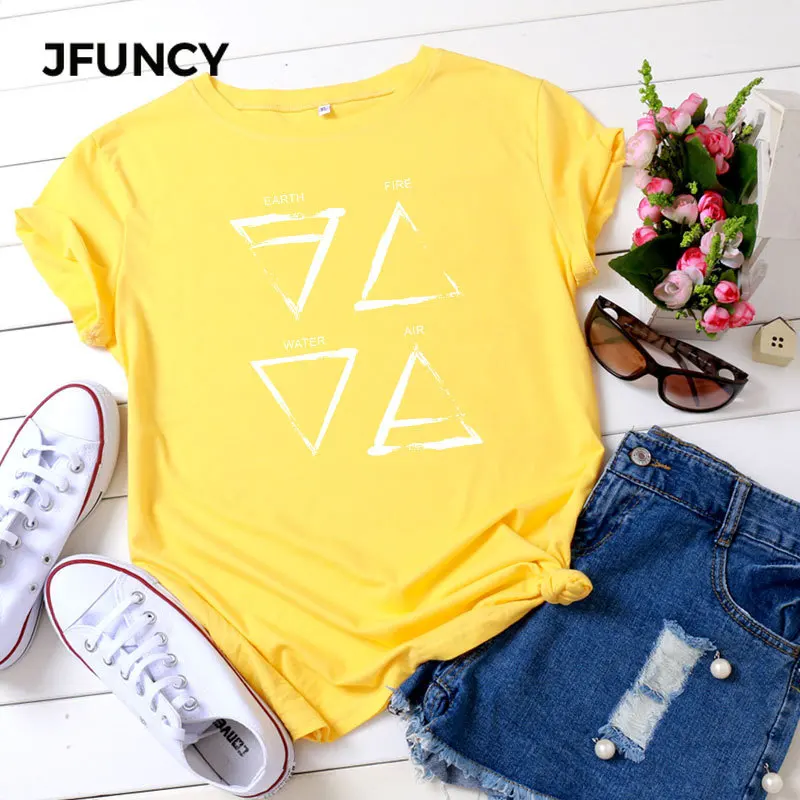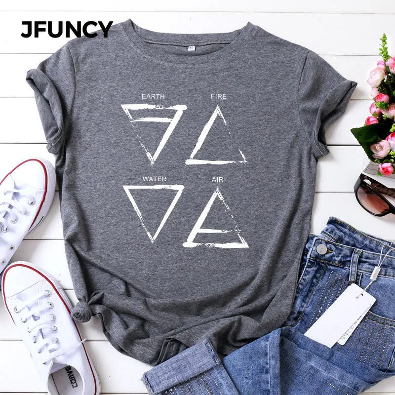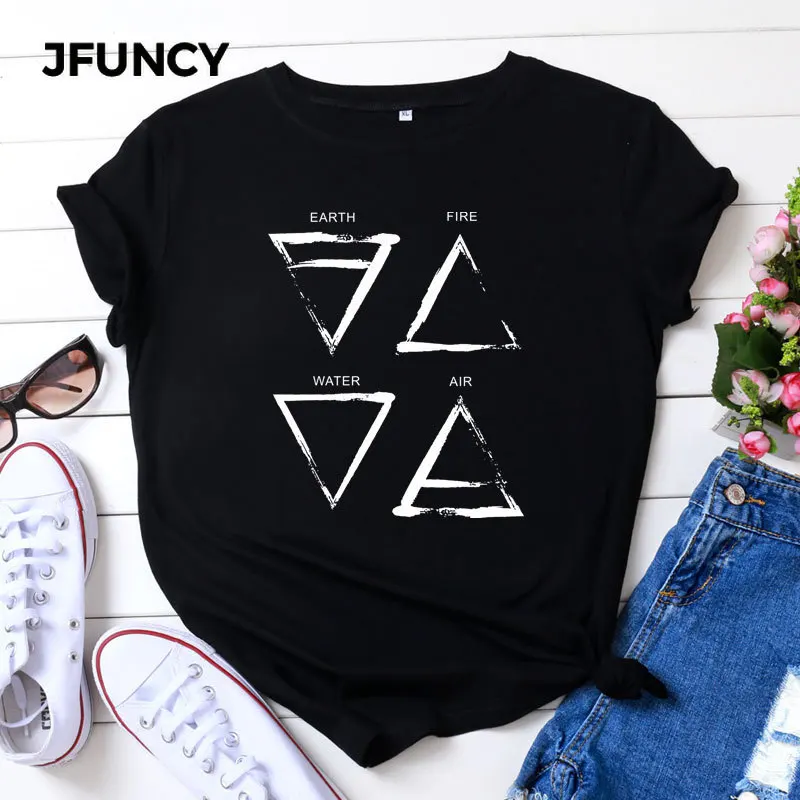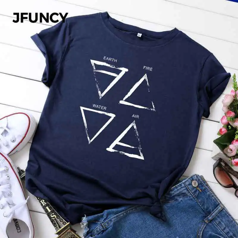 JFUNCY футболки женские забавные повседневные летние хлопковые футболки с треугольным графическим принтом с круглым вырезом и коротким рукавом женские футболки топы