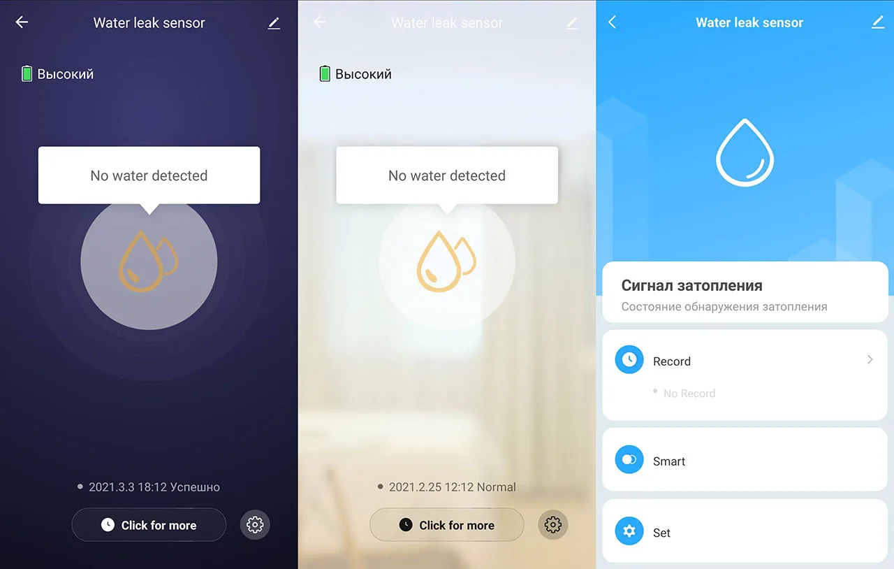 Купил несколько разных, за примерно одинаковые деньги. Больше всех понравился первый на фотке, тот который здесь покупал - третий на ней. У первого единственного есть аларм не только по протечке, а и по отсутствию воды (типа уровень контролировать), и кнопка сброса вместо дырки в которую булавкой надо тыкать. У всех разные экраны датчика на телефоне, у купленного здесь понравился меньше всех, и коннектился он как-то более геморройно, раз 5 питание с резетом передёргивал. Тем не менее все сделаны достаточно хорошо, щупы вообще одинаковые. Подключаются, срабатывают быстро. Разница только в форме корпуса.