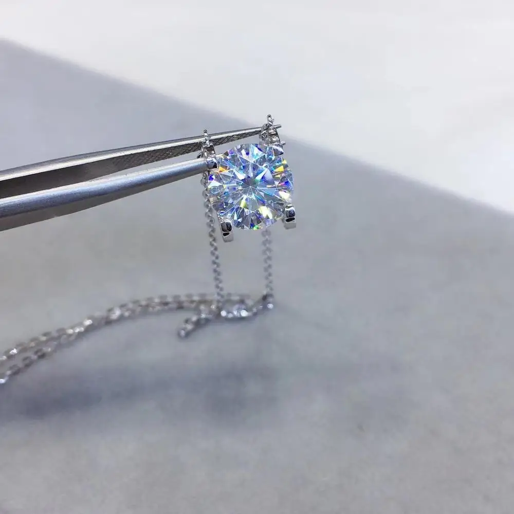 Колье из серебра 925 пробы с бриллиантом, с ау750 штампом, с покрытием из белого золота 18 К, 1 карат D Moissanite, подвески, цепочки
