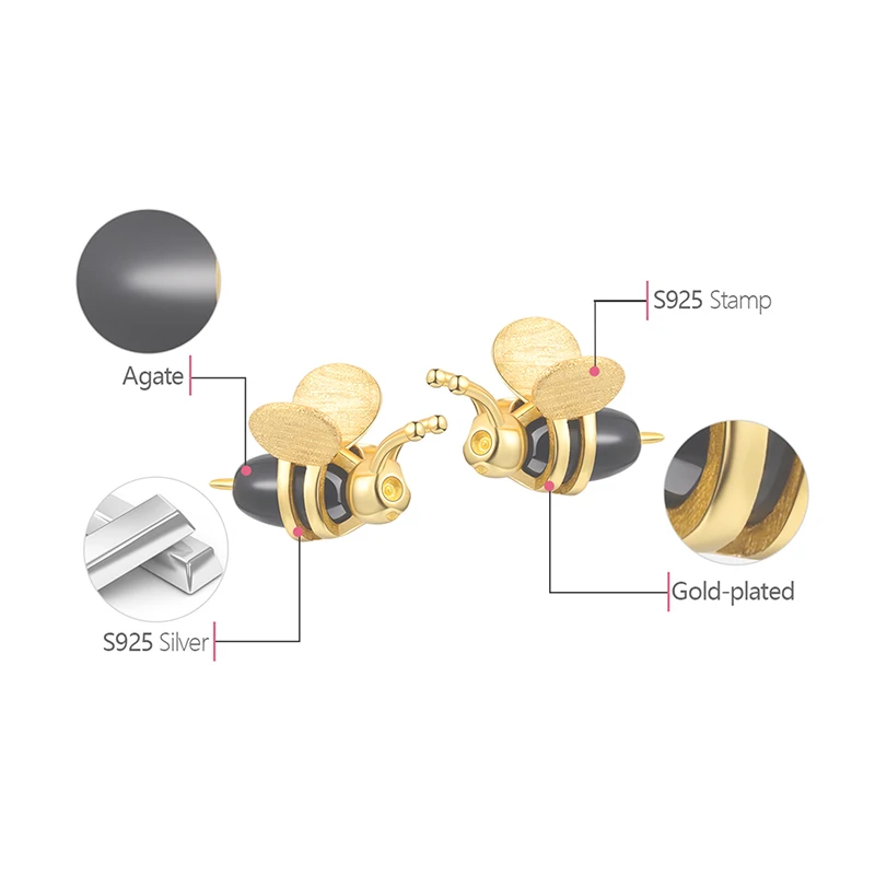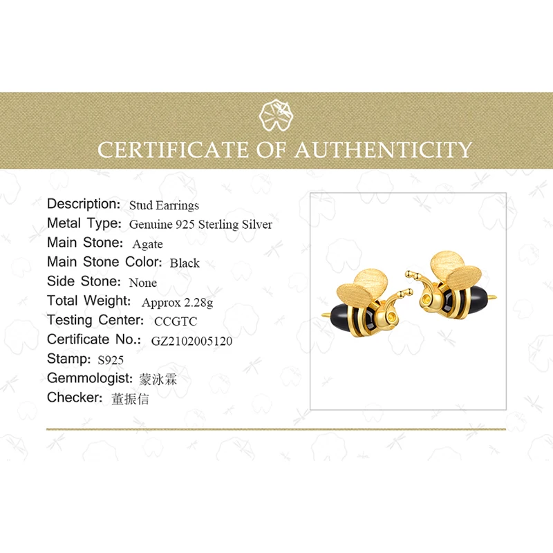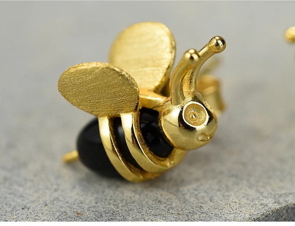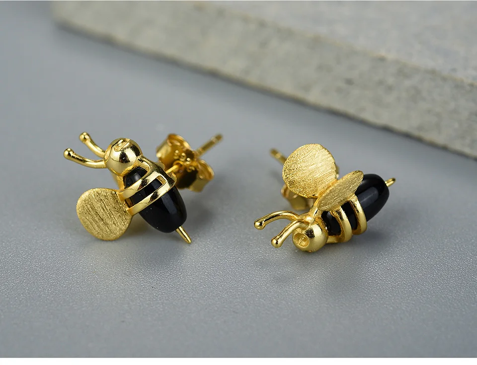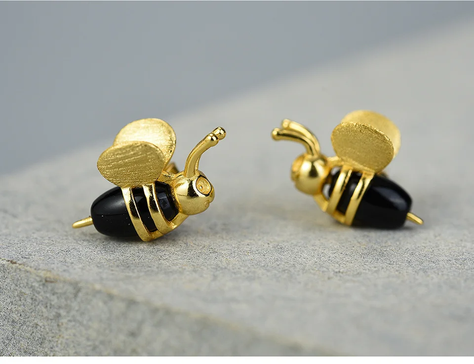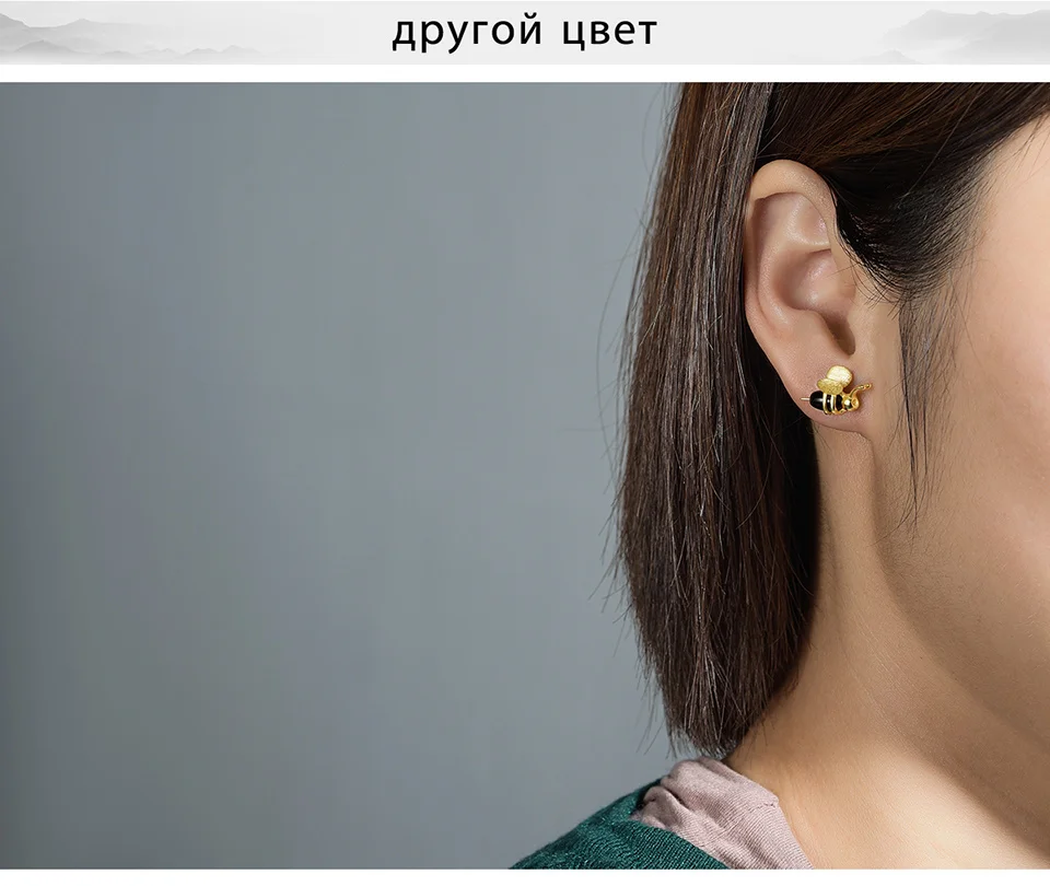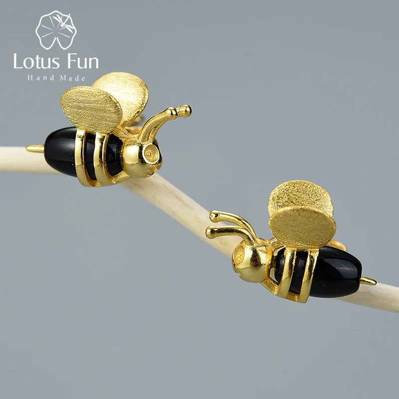 Женские серьги с медовым гвоздики Пчелка Lotus Fun, ювелирные украшения ручного изготовления из настоящего серебра 925 пробы, 18 К золота