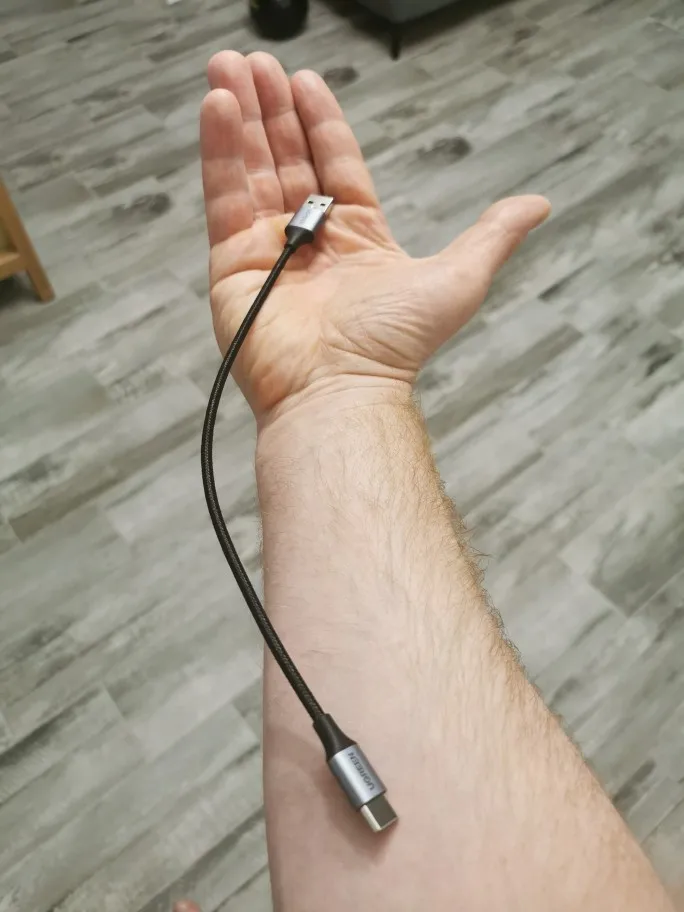 Все как всегда замечательно! Фирменный зелёный пакет, качественный товар, стяжка для кабеля в подарок. Доставка быстрая - буквально за две недели. Брал 25 см вариант специально для использования с пауэрбанком. Быструю зарядку поддерживает. Товаром доволен. Рекомендую к покупке. Продавцу спасибо за оперативную отправку.