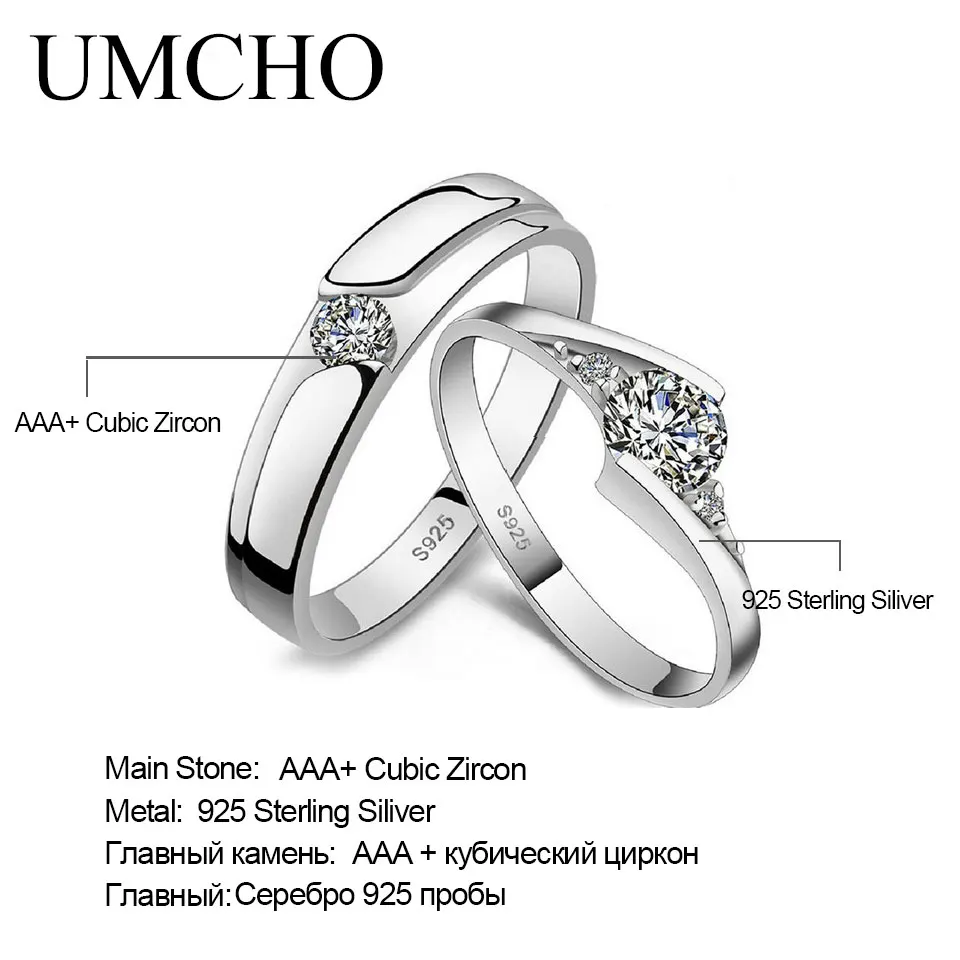 UMCHO, романтические свадебные парные кольца из стерлингового серебра 925 пробы, кольцо для жены, женщины, девушки, подруги, Подарок на годовщину помолвки, Изящные Ювелирные изделия