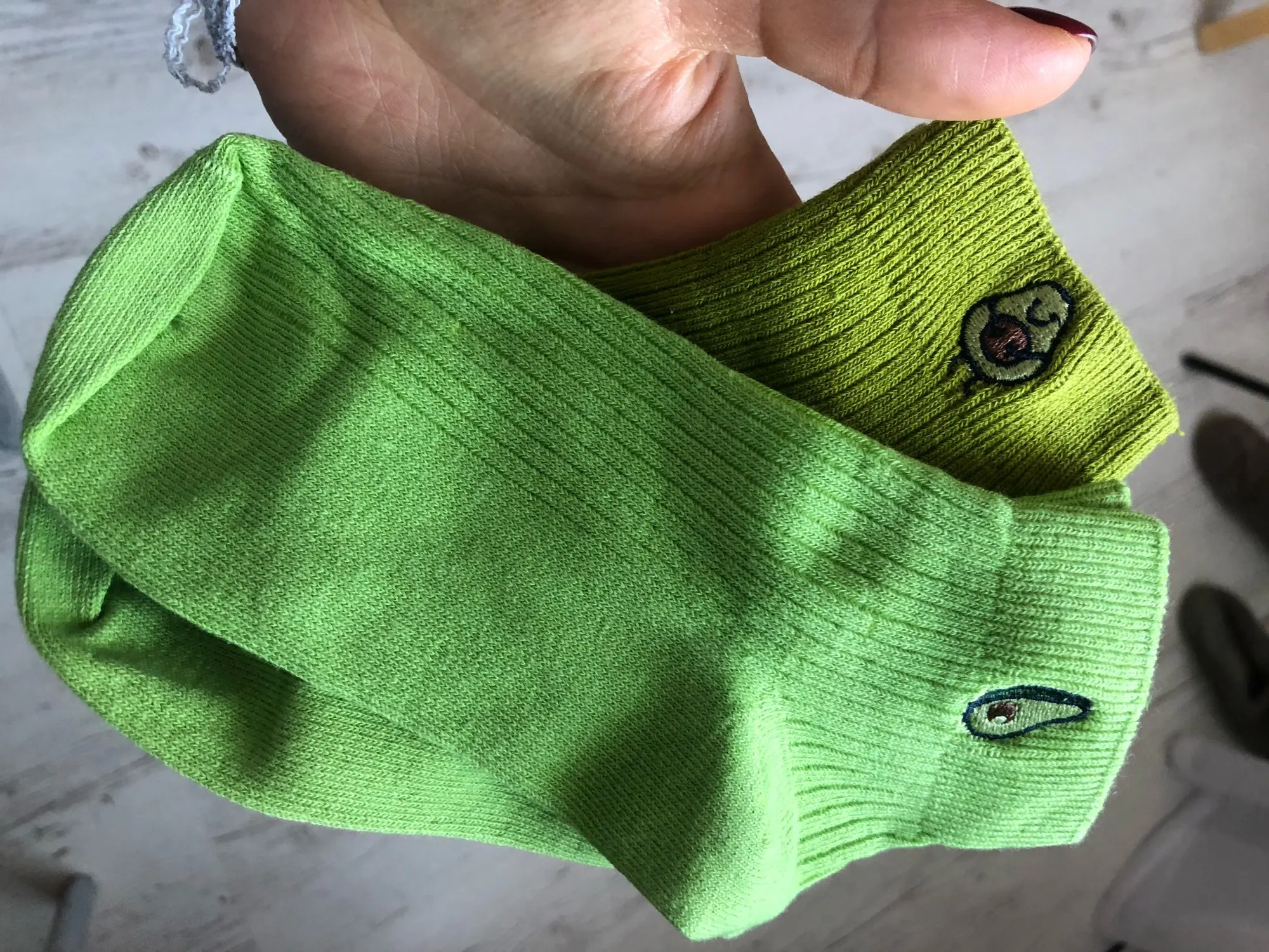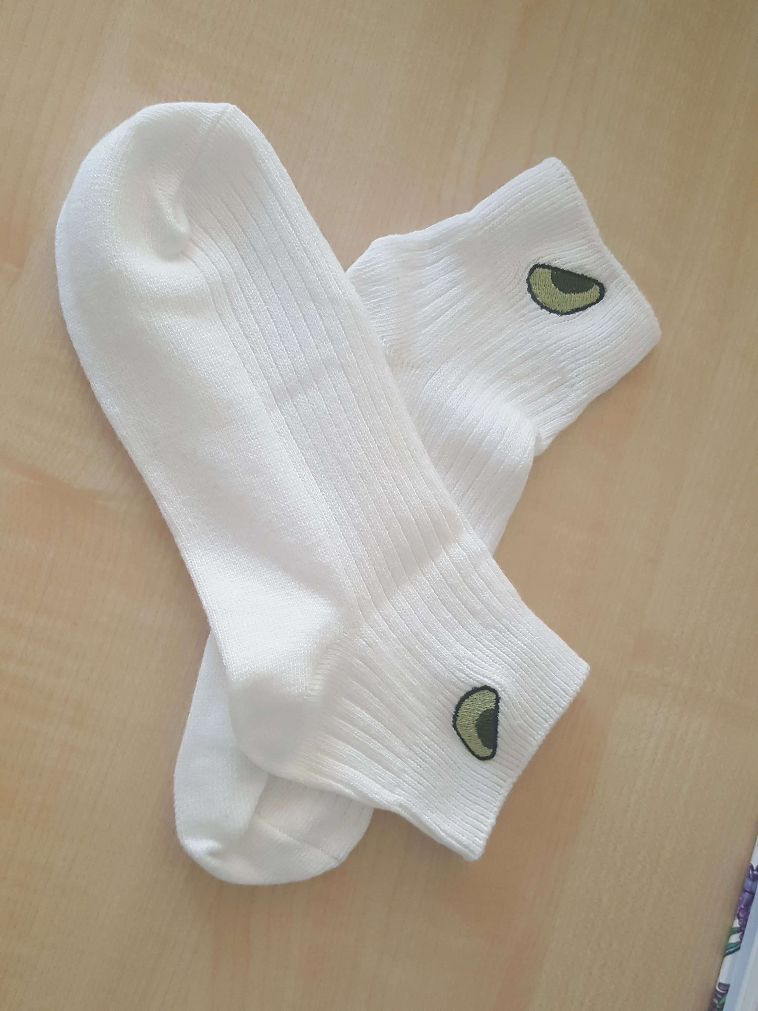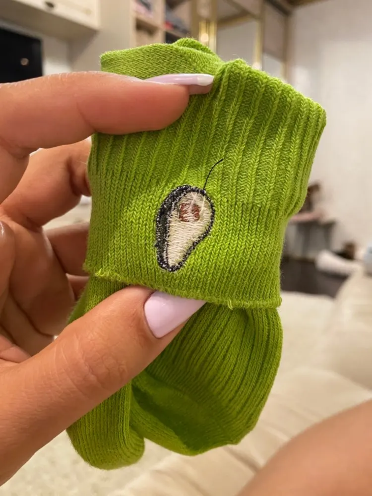 Очень понравились носочки, решила заказать. Приняли в Московскую область быстро за 2,5 недели. Вышивка «авокадо» аккуратная, без претензий. Никаких дефектов нет , нитки не торчат. Покупкой довольна, буду заказывать ещё. Спасибо.