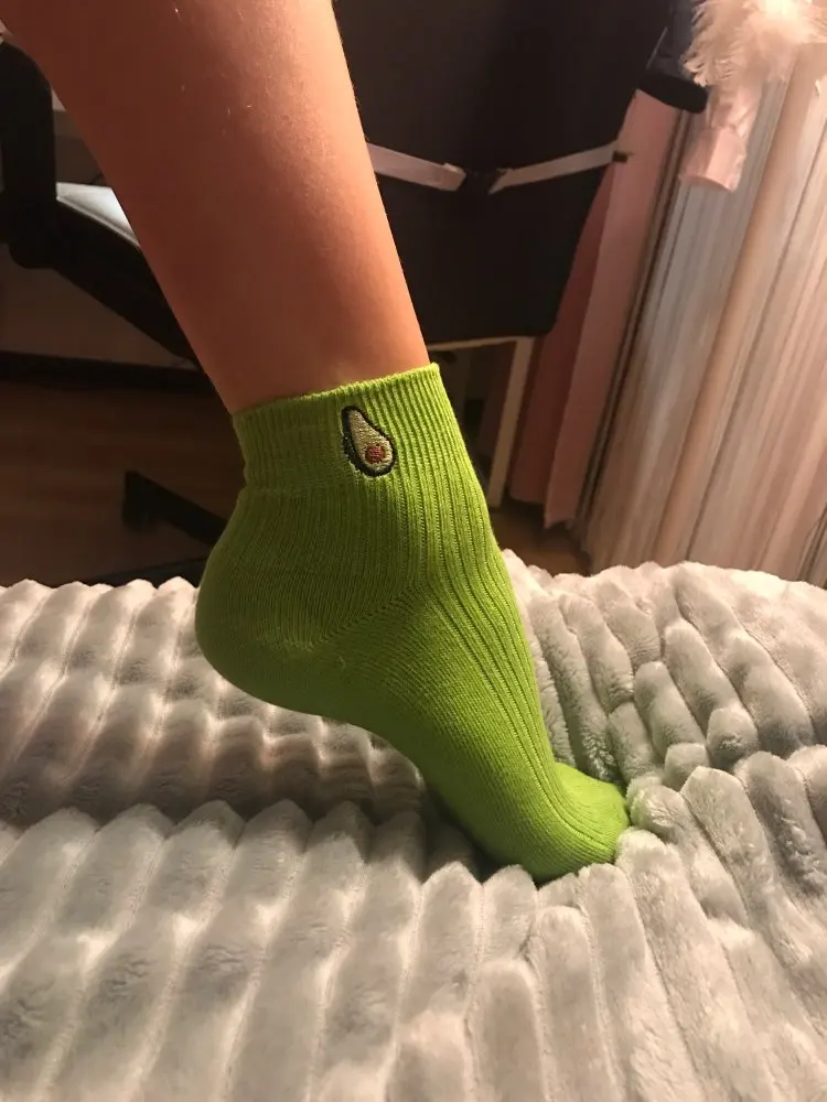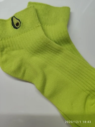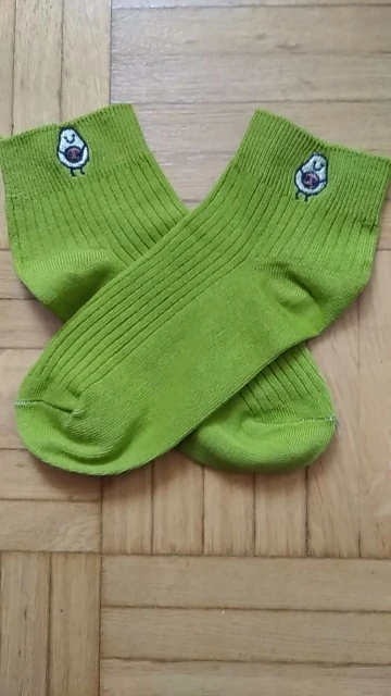Носочки в Латвию пришли за 2.5 недели. На ощупь приятные, хлопковые. Авокадо милый :) цвет как на картинке, вживую даже более насыщенный. Швы аккуратные, нитки нигде не точат, дырочек тоже нет. Визуал но максимум на 38 размер. Ещё не надевала, но думаю с ними все ок, тем более за такую цену ;)