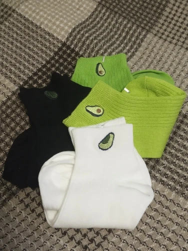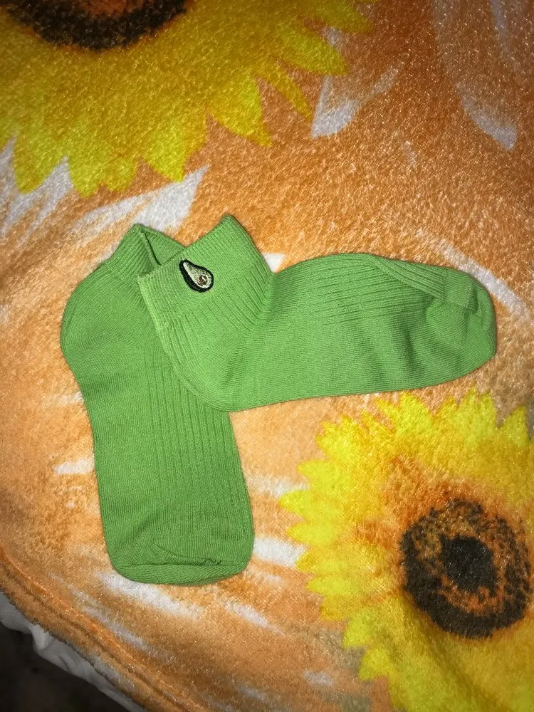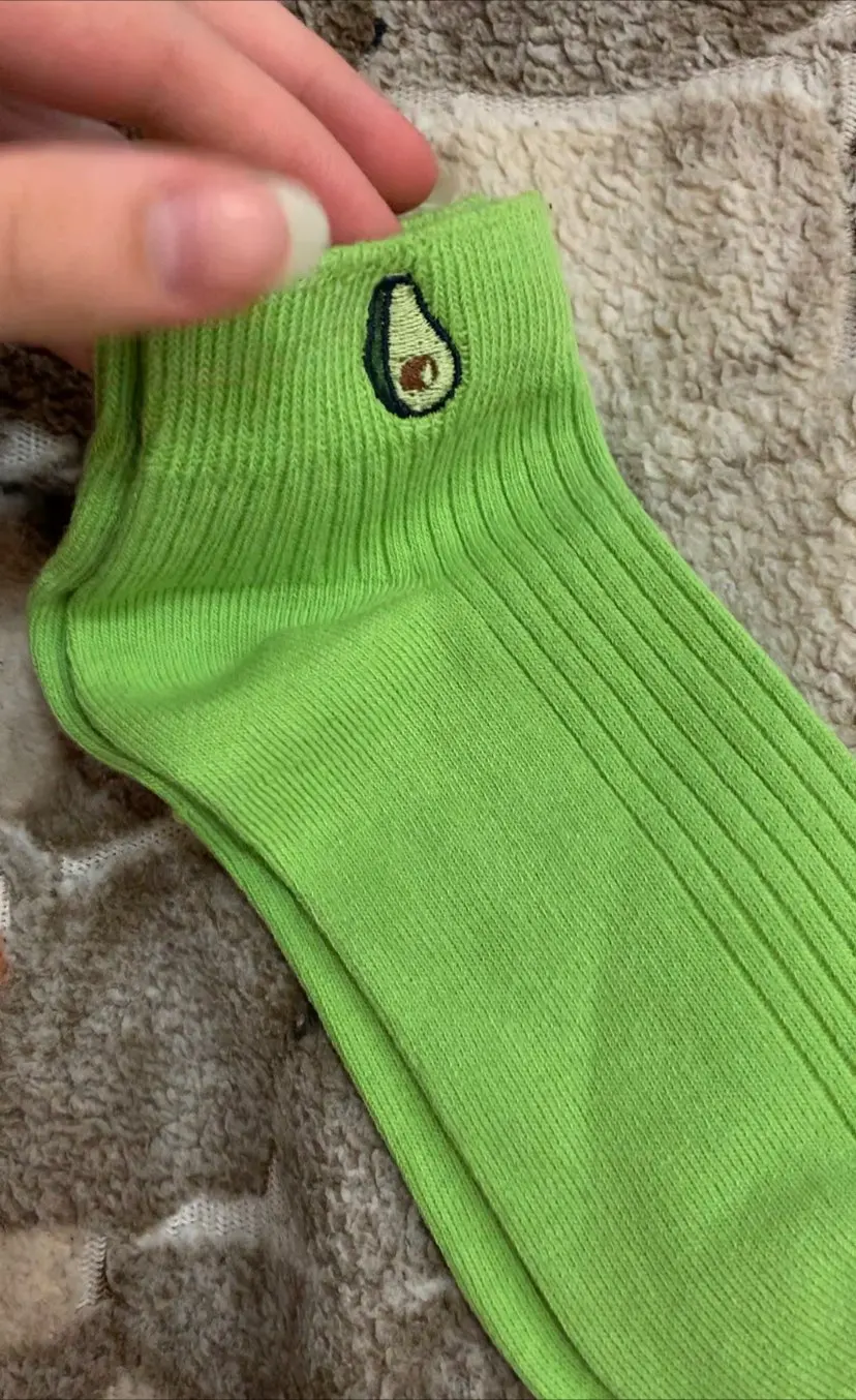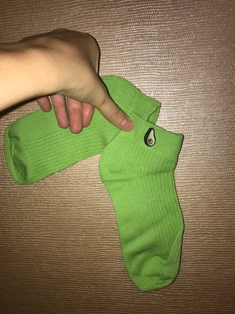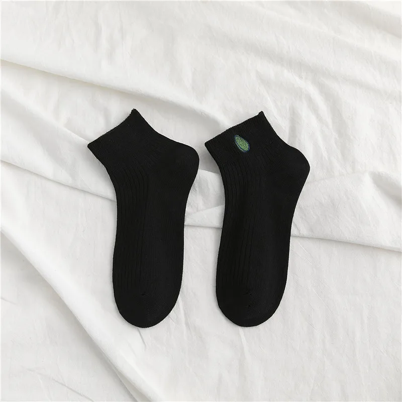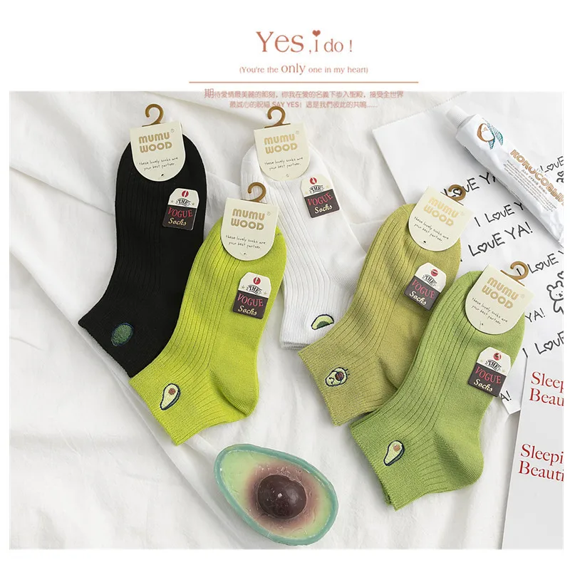 Носки женские хлопковые, однотонные, с вышивкой авокадо, дышащие