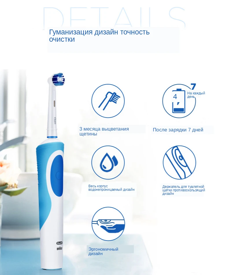 Нормальная щетка. Всё соответствует описанию. Тревел-кейс положили в подарок, как обещали. Но, на щетке нет ни одного, даже самого захудалого, светодиодика. Не понятно, заряжается она или нет. И что вообще она делает. А так - работает. Интересно, долго ли она будет поддерживать гордое имя Браун или загнется через то время, когда нельзя будет дополнить отзыв. Если бы продавец не тянул с отправкой, щетка бы пришла к 8 марта в подарок жене. А поскольку он тянул, то щетка пришла 9 марта. Ну, хорошо хоть пришла. Спасибо.