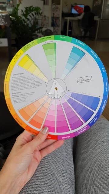 Мега быстрая доставка. Довольно большой размер цветового диска. Двусторонняя карта цветов. Очень довольна.