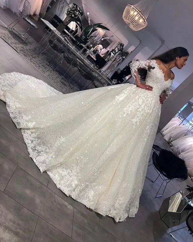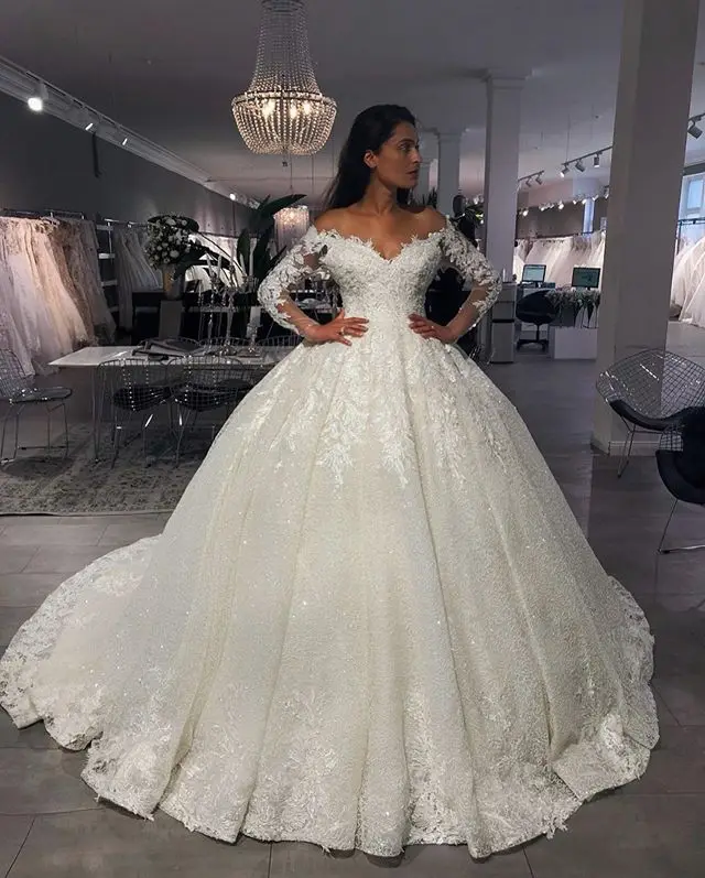 Винтажные Свадебные платья с открытыми плечами, новинка 2020, длинное свадебное платье с длинным рукавом и V-образным вырезом, Драпированное замком