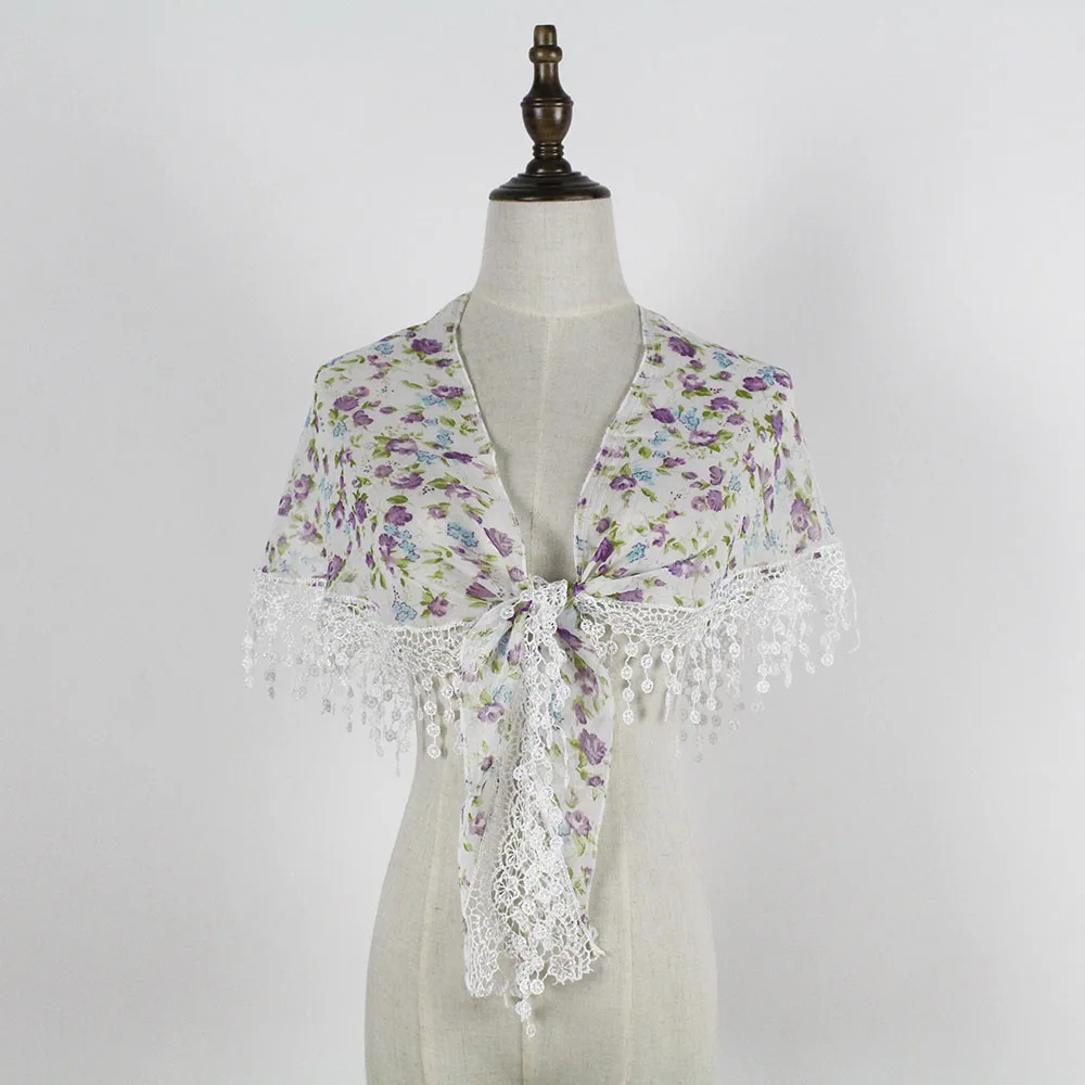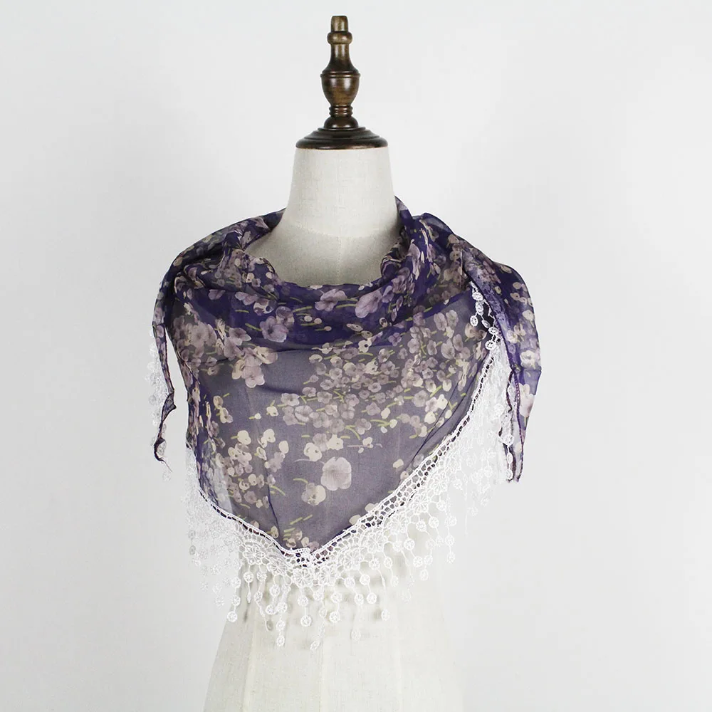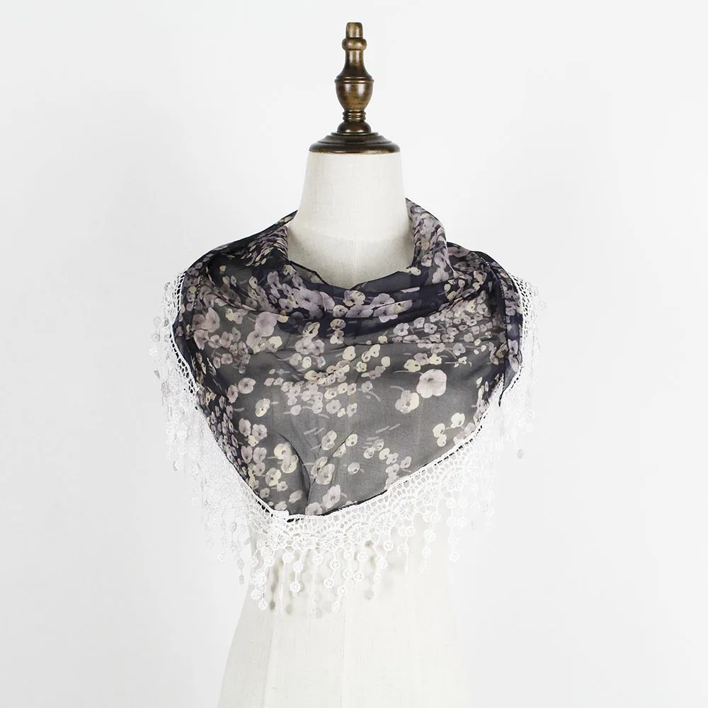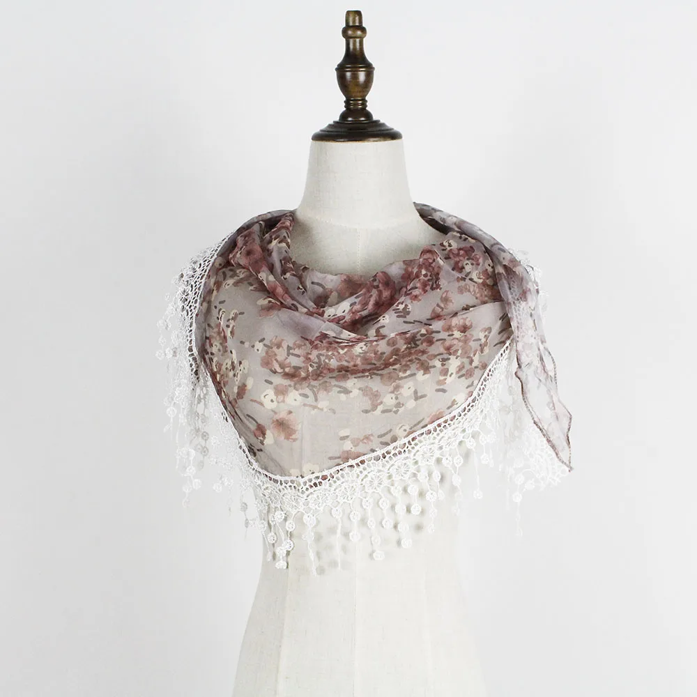 Шифоновый кружевной треугольный шарф, летняя шаль, дешевая бандана, хиджаб, женская зимняя одежда с кисточками