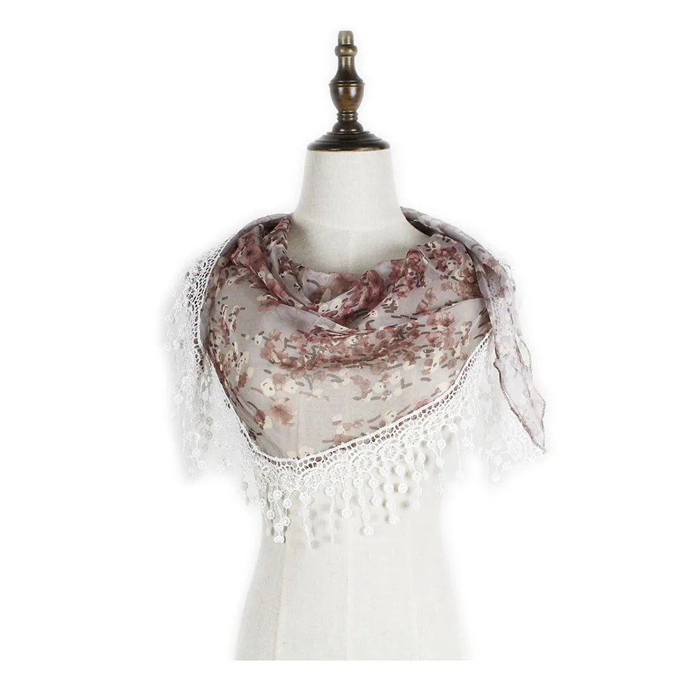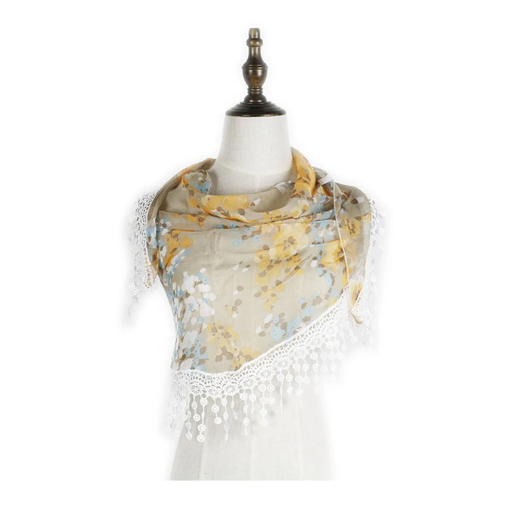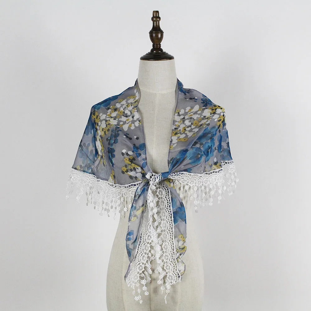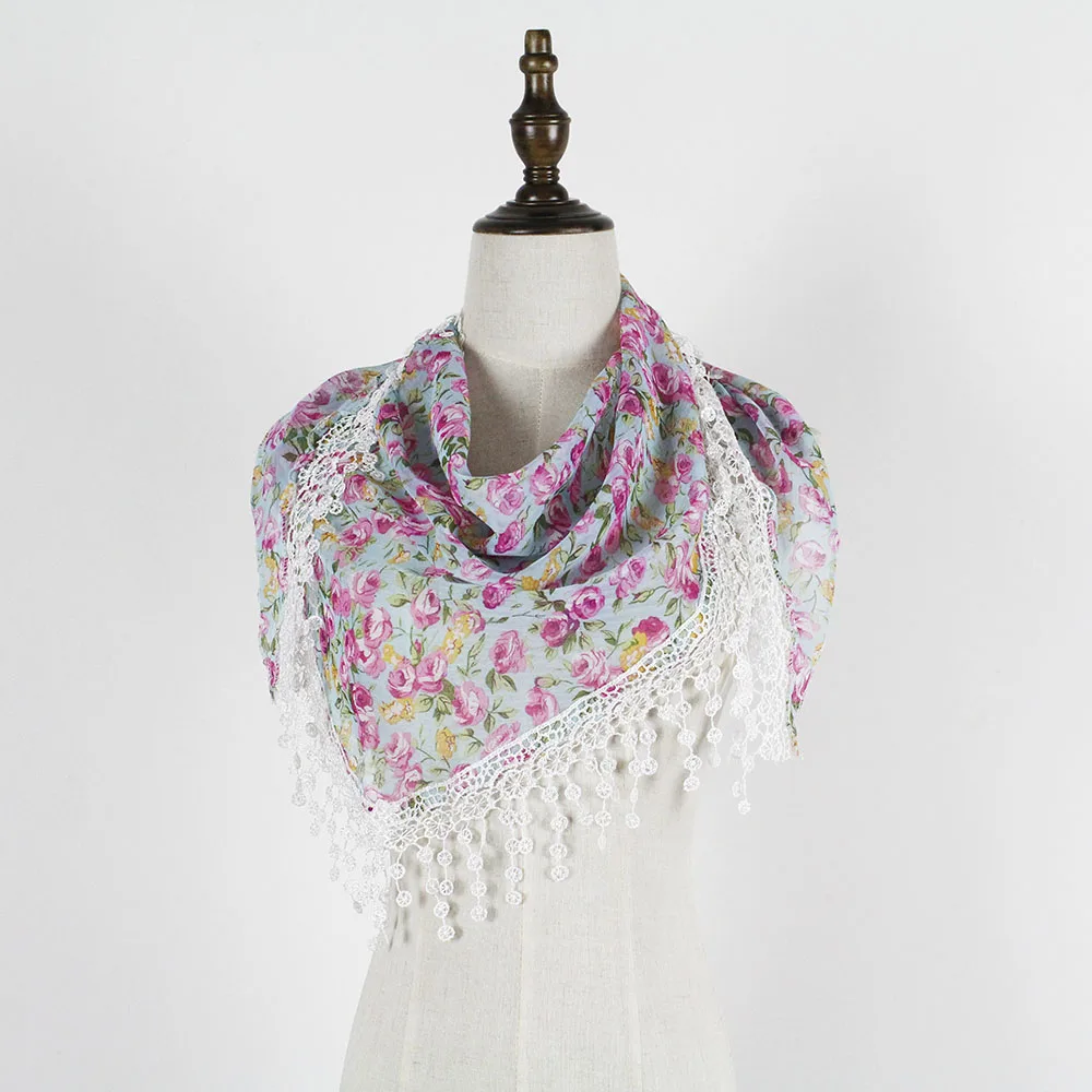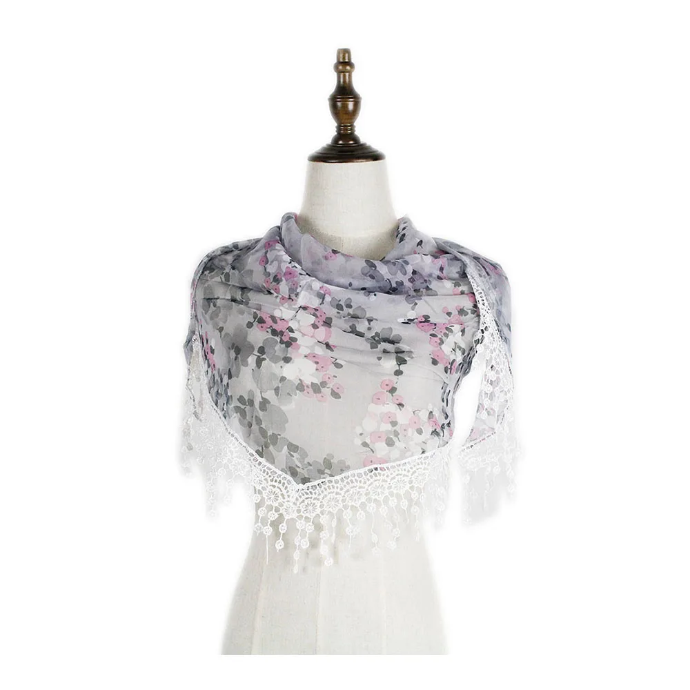 Шифоновый кружевной треугольный шарф, летняя шаль, дешевая бандана, хиджаб, женская зимняя одежда с кисточками