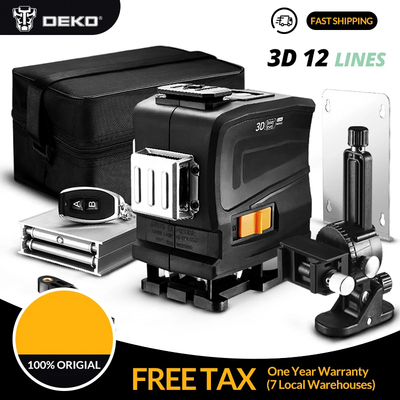 Лазерный уровень DEKO, 12 линий, 3D зеленый свет, Горизонтальные и вертикальные линии, дистанционное управление, высокая точность, самовыравнивание, для помещений