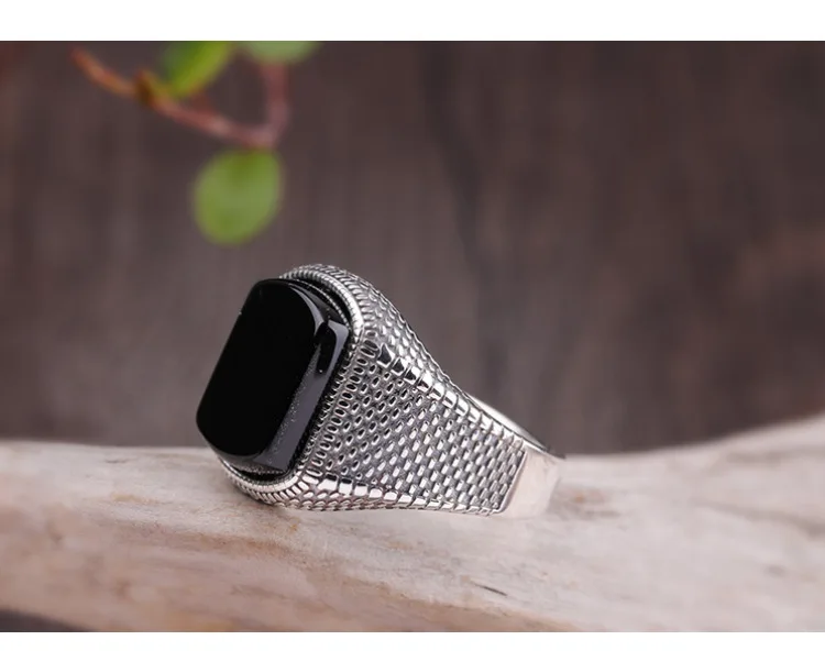 Мужское Винтажное кольцо с натуральным Черным Камнем, 6 г