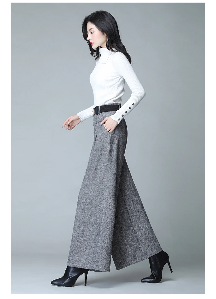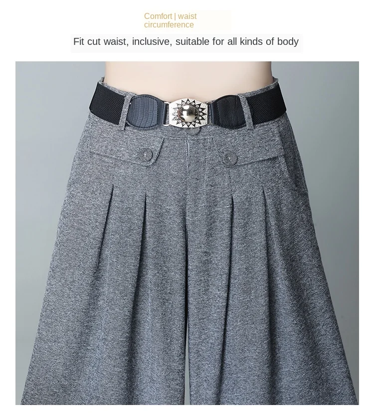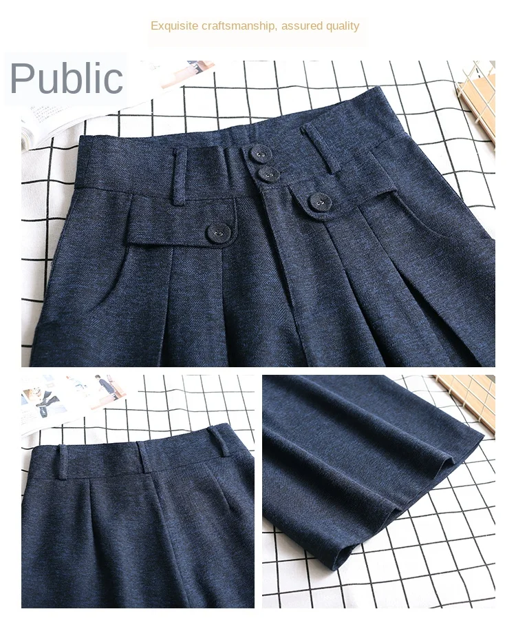 Новинка весны 2021, шерстяные брюки с широкими штанинами, женские плиссированные повседневные брюки, юбка, прямые брюки, брюки с полными штанинами