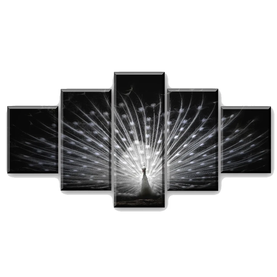 Картина на холсте, из 5 частей, с изображением павлина в лесу
