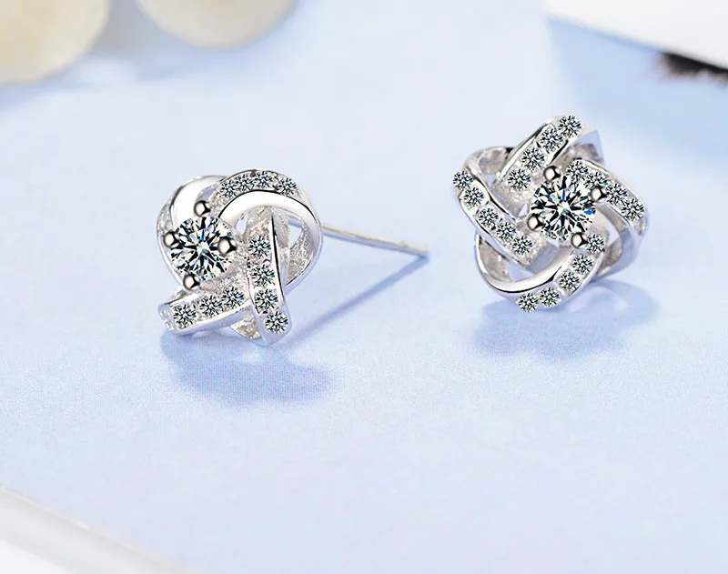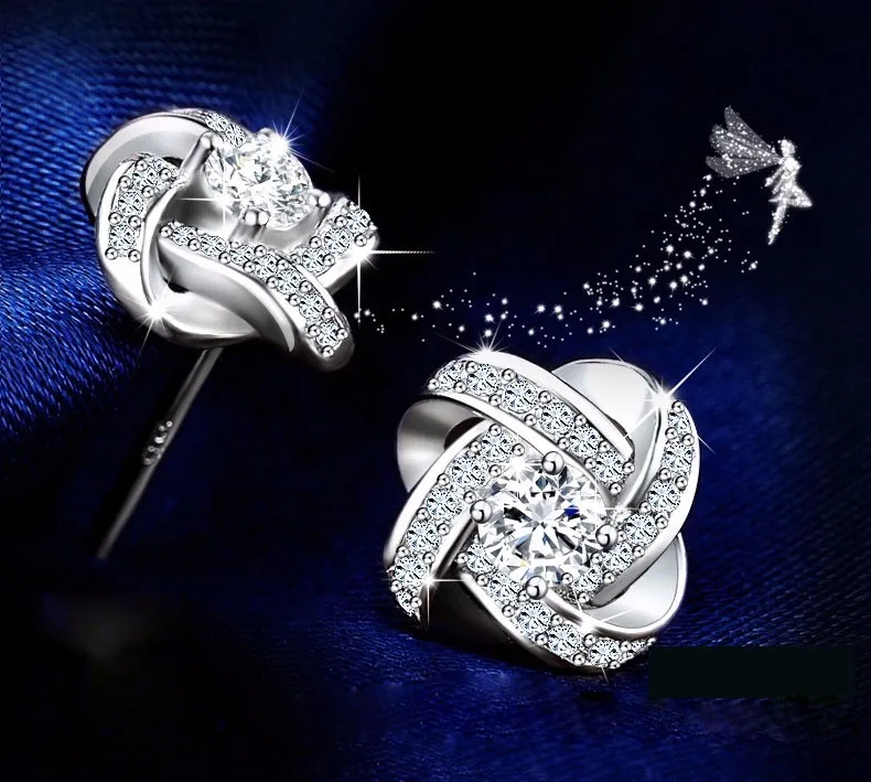 Серьги-гвоздики из стерлингового серебра 925 пробы с кристаллами для женщин модная Роскошная Свадебная Сережка бижутерия аксессуар с кубическим цирконием
