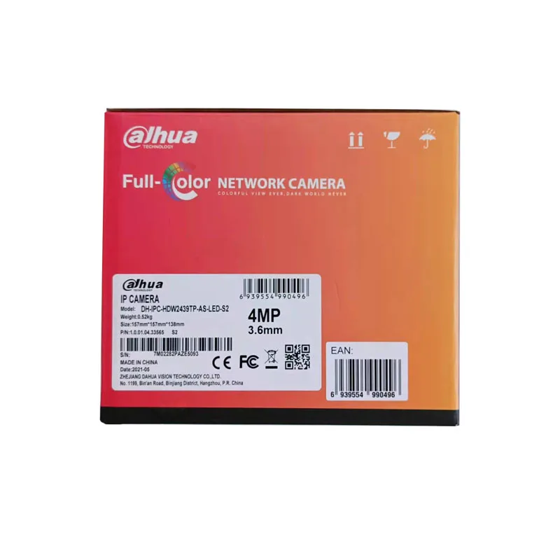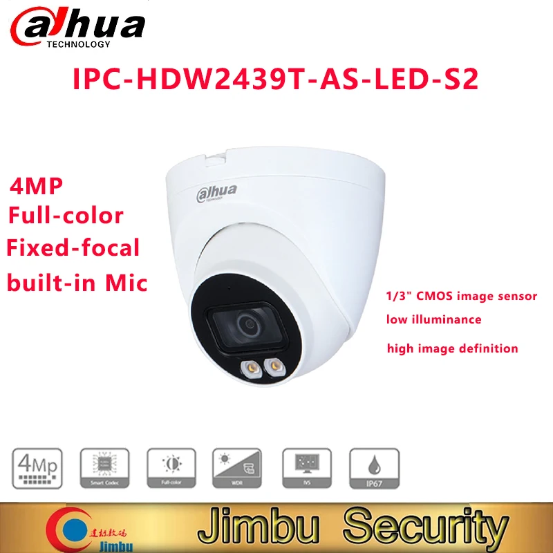 Dahua HDW2439T-AS-LED-S2 4-мегапиксельная IP-камера, полноцветный объектив с фиксированным фокусным расстоянием, видеокамера POE, встроенный микрофон, домофон, камера, веб-камера для помещений