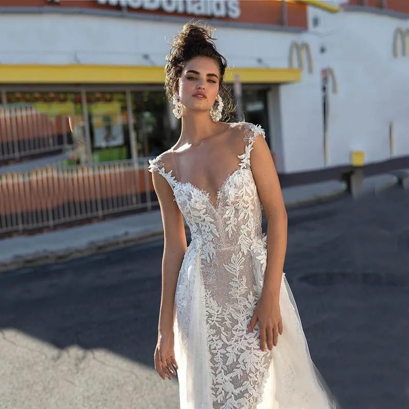 Кружевное свадебное платье-русалка, сексуальное платье невесты цвет...