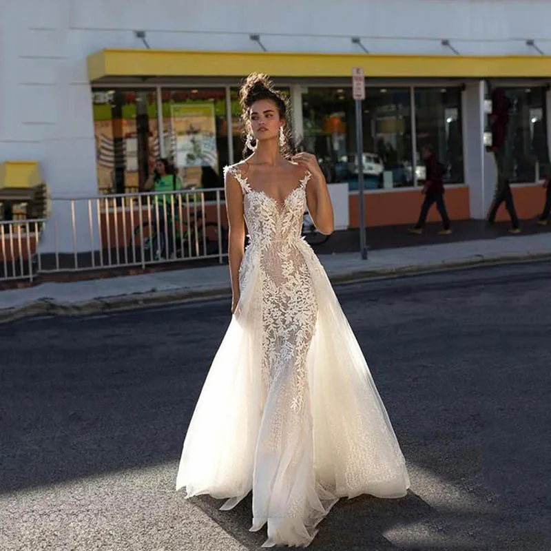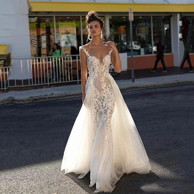 Сексуальное свадебное платье с юбкой-годе, со съемным шлейфом и дли...