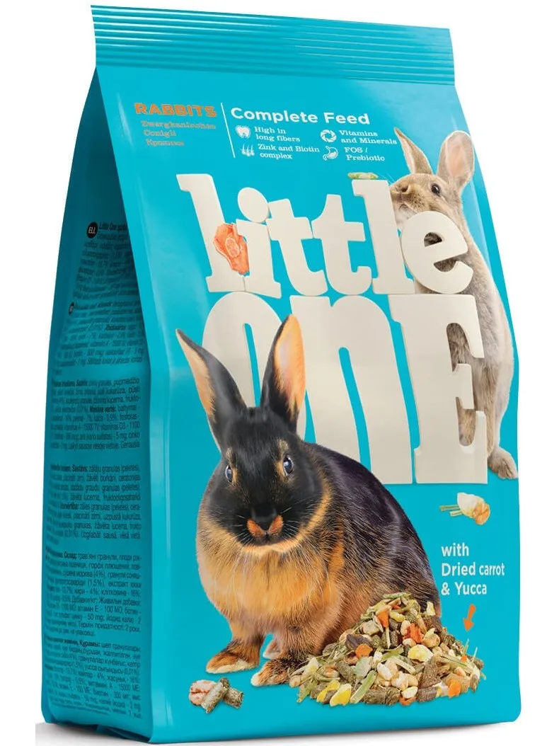 Little One - полноценный корм с добавлением витаминов и минеральных веществ, сбалансированный в соответствии с пищевыми потребностями кроликов. Рацион отличается высоким содержанием клетчатки, необходимой для правильного пищеварения кроликов. Корм обогащен сушеными овощами, плющеными бобами, плодами редких растений.