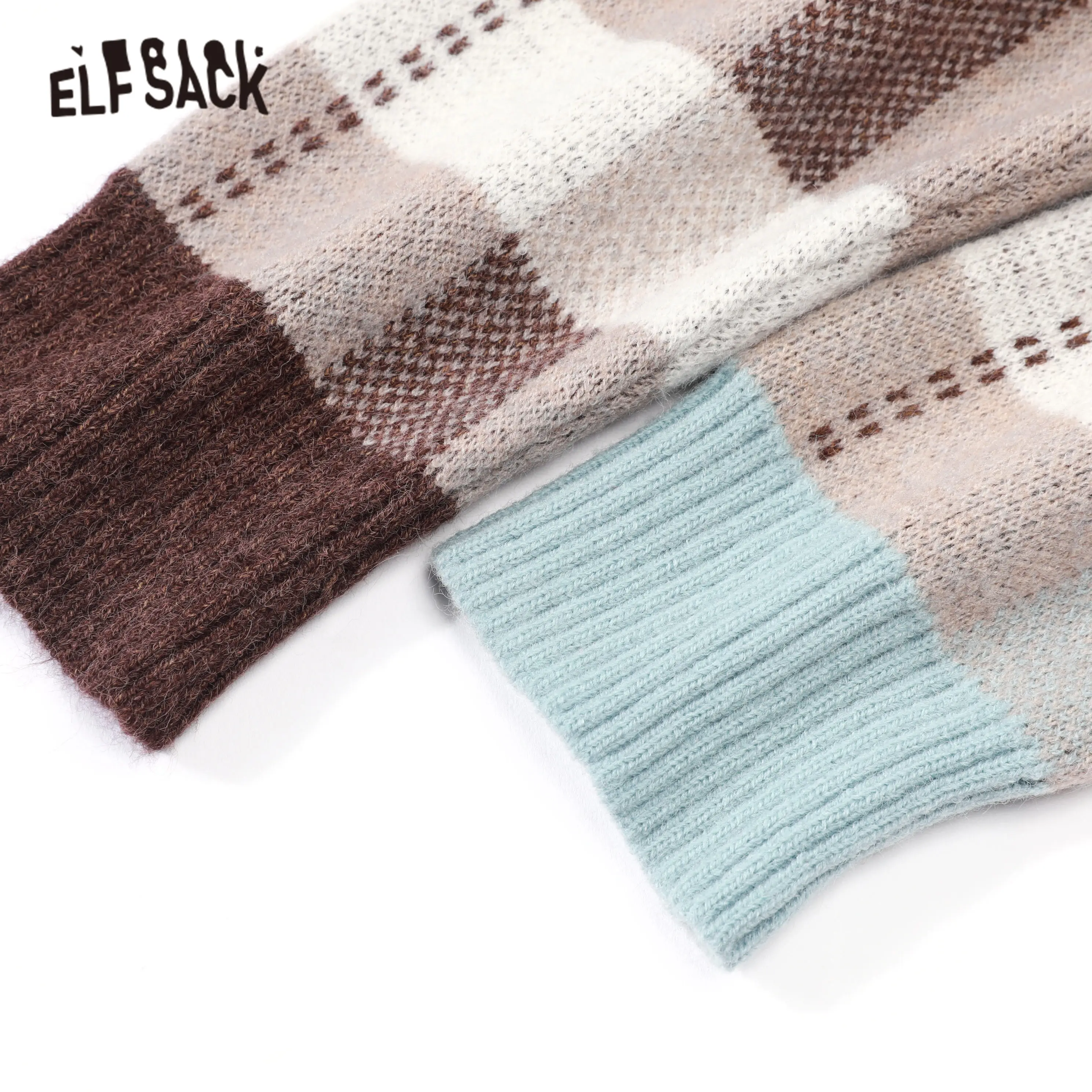 Женский трикотажный пуловер ELFSACK, коричневый винтажный свитер в клетку в британском стиле с длинным рукавом, повседневный Повседневный Топ, весна 2020