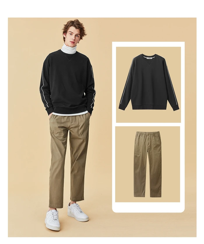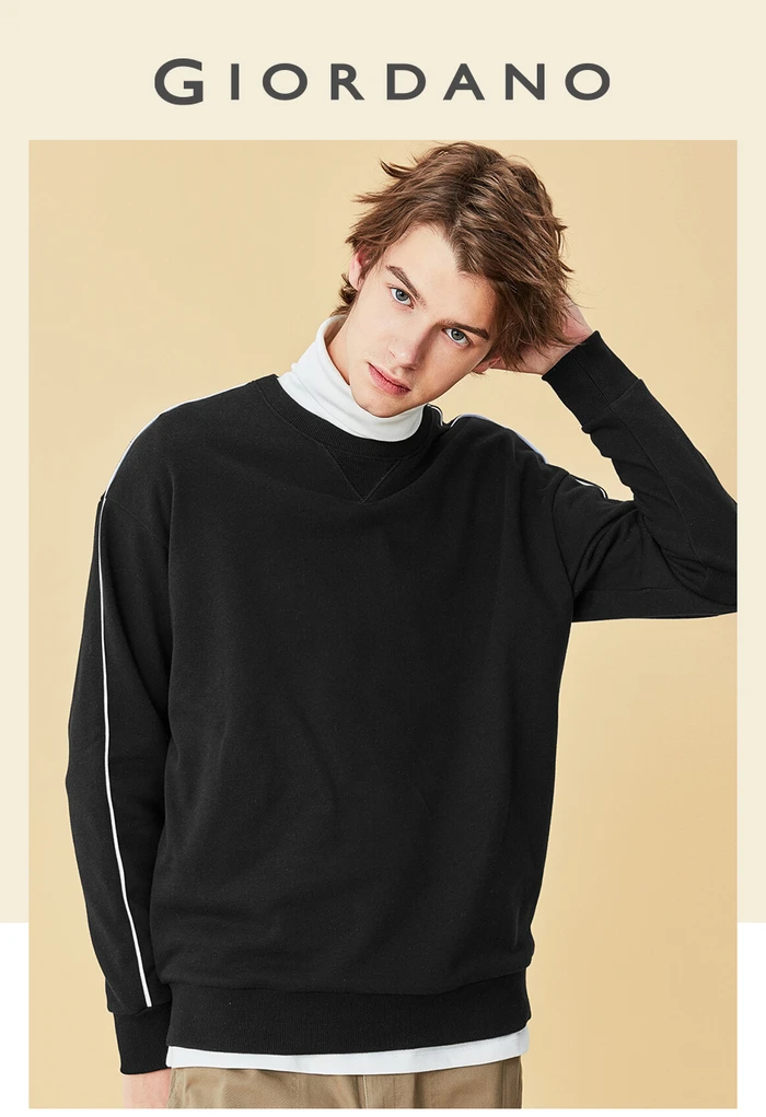 Мужская толстовка с вырезом лодочкой Giordano, свободная толстовка средней толщины с открытыми плечами, 01020796