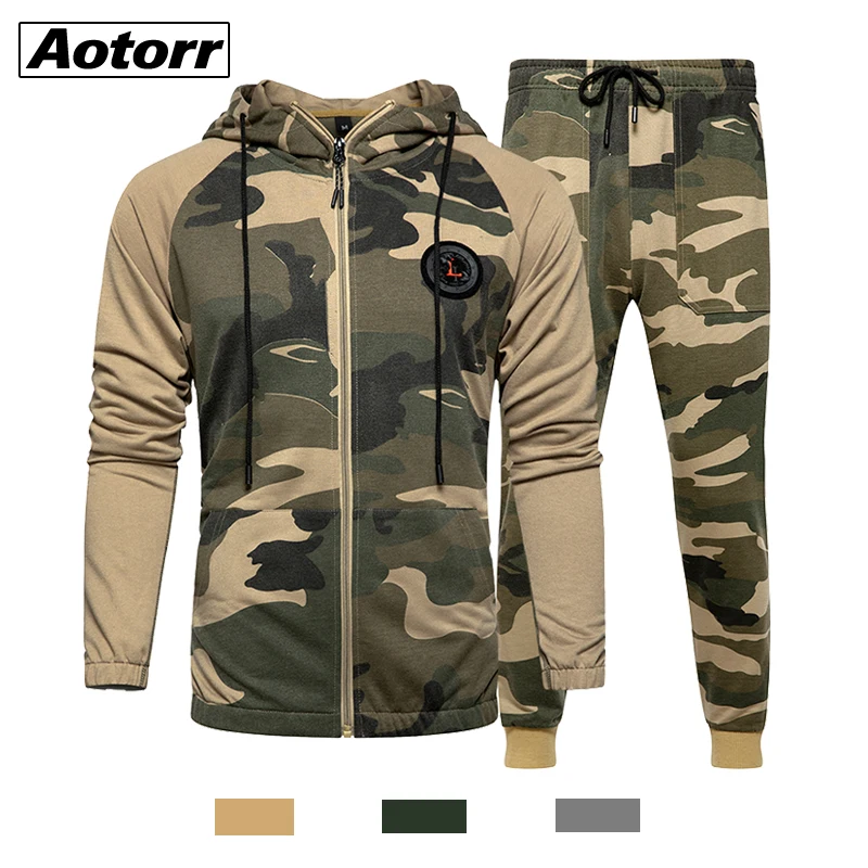 Мужской спортивный костюм из 2 предметов, повседневная камуфляжная ...