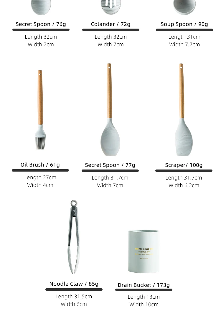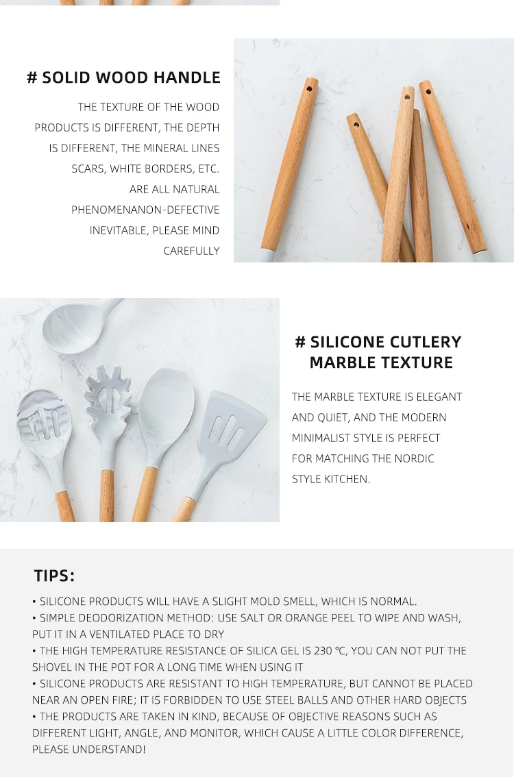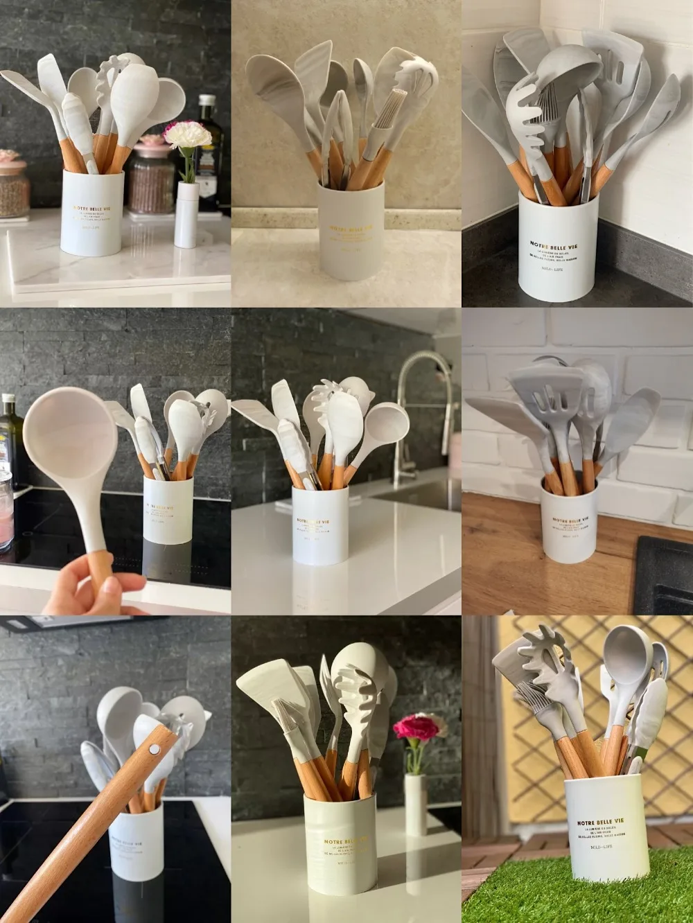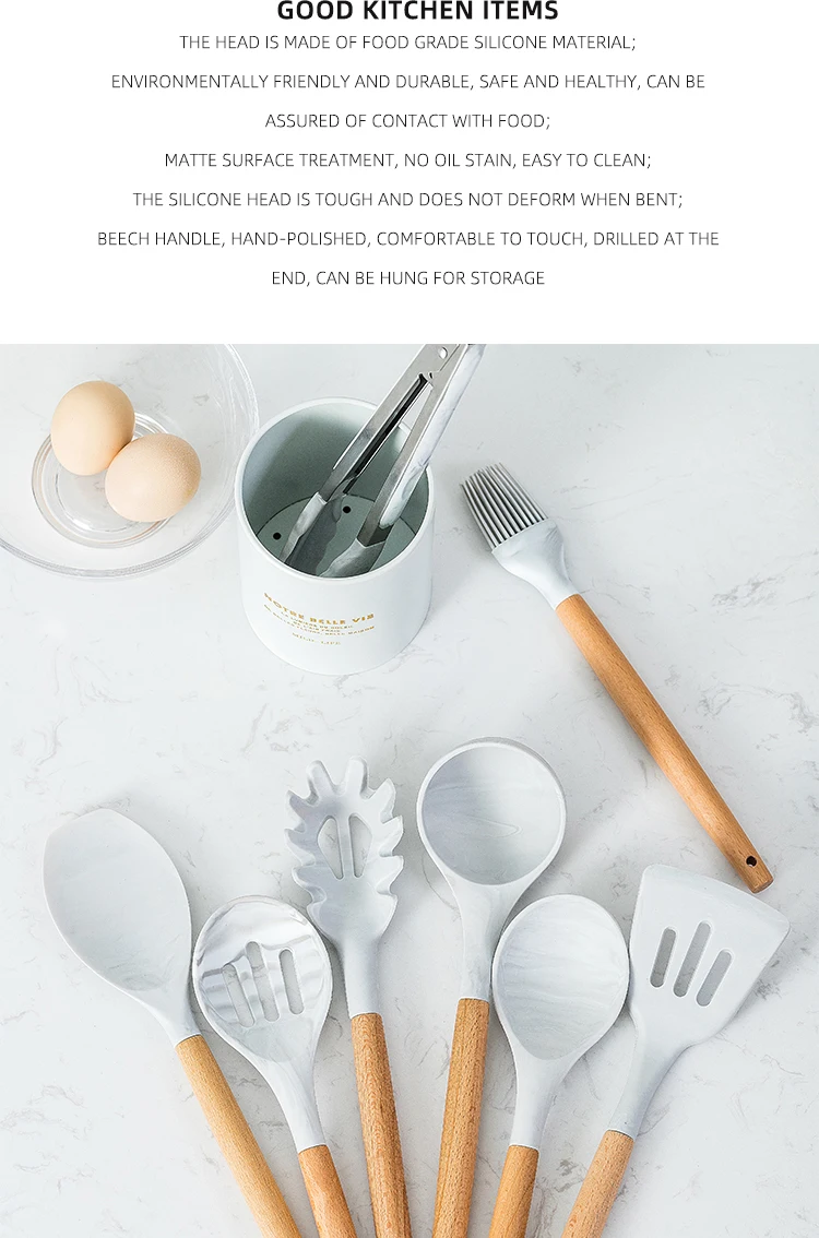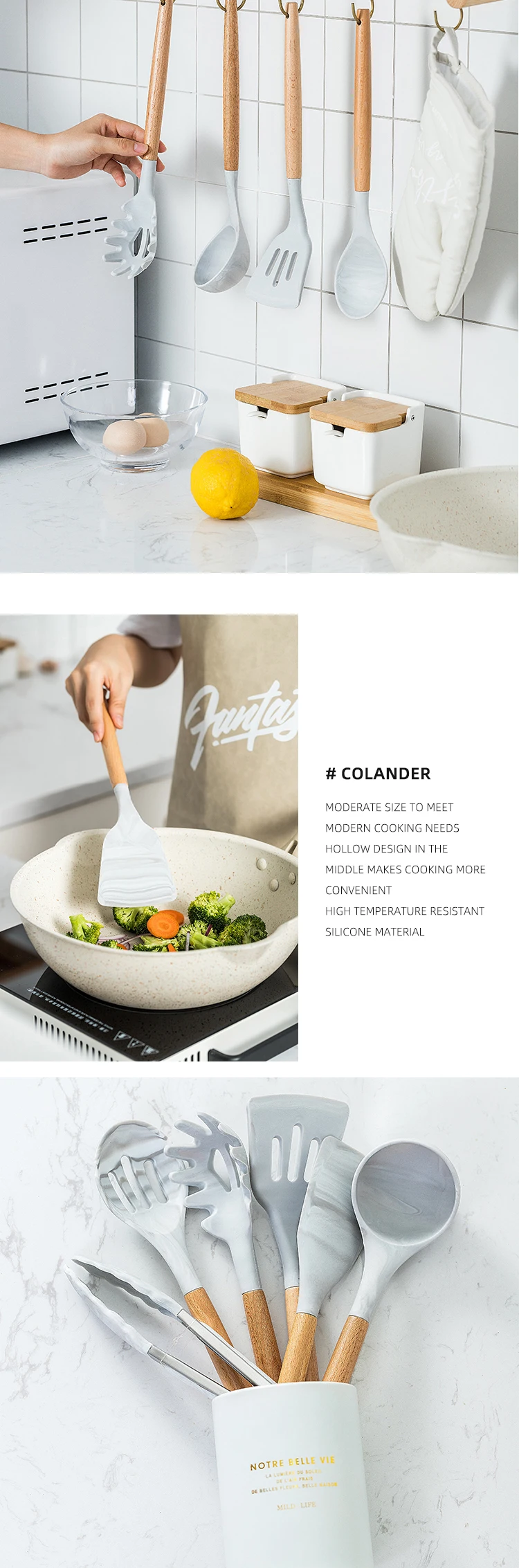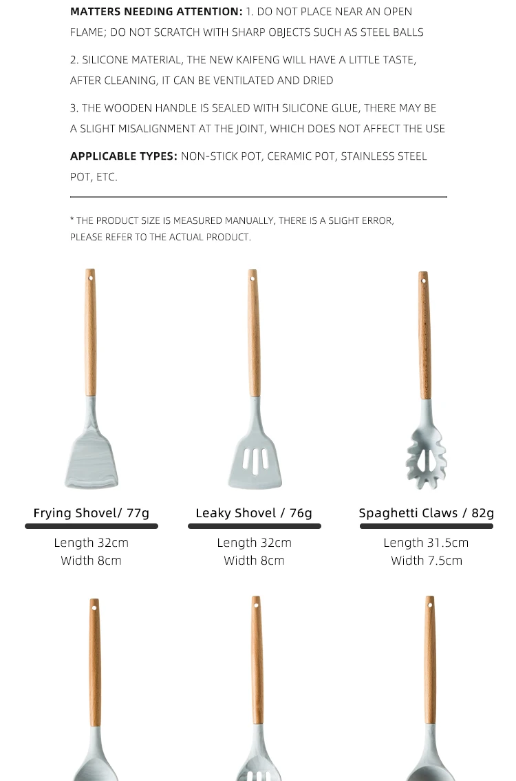 Набор силиконовых принадлежностей премиум-класса, антипригарная лопатка, черпак, посуда с деревянными ручками шт., с ящиком для хранения, кухонные принадлежности