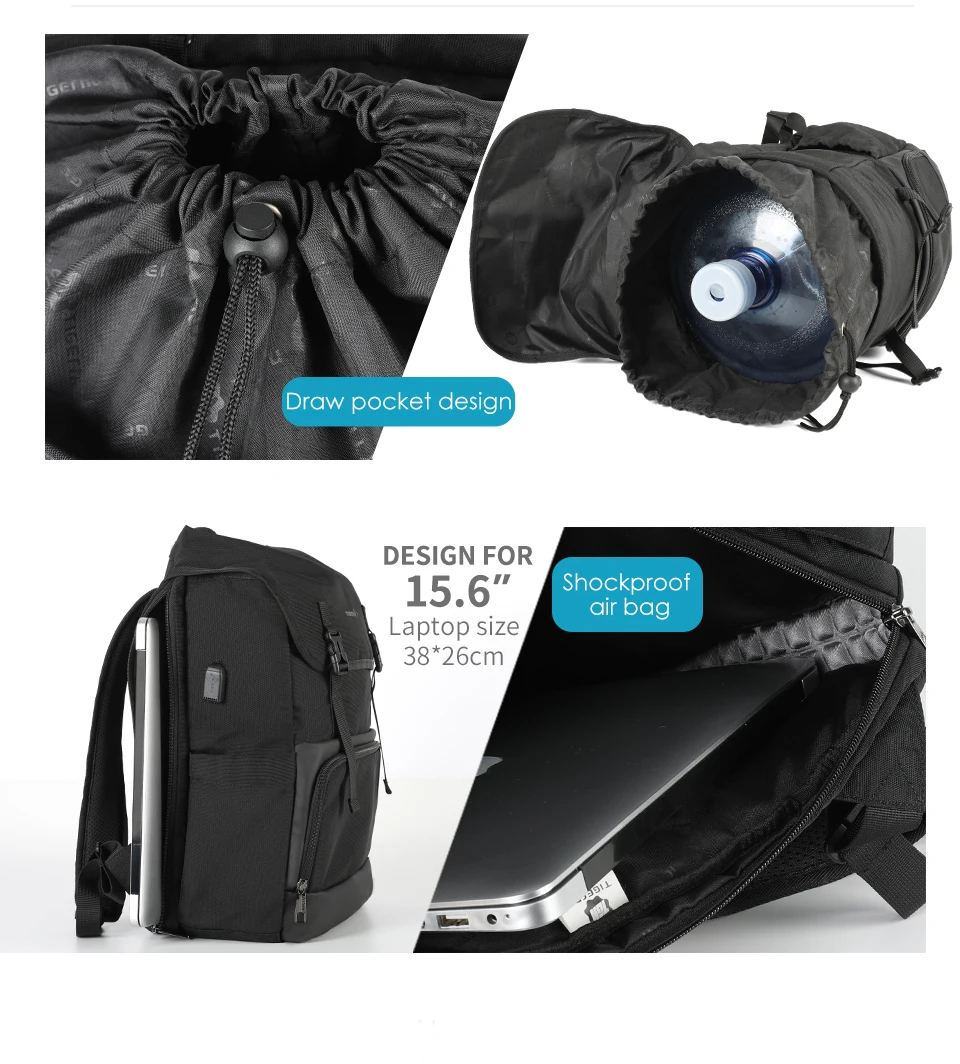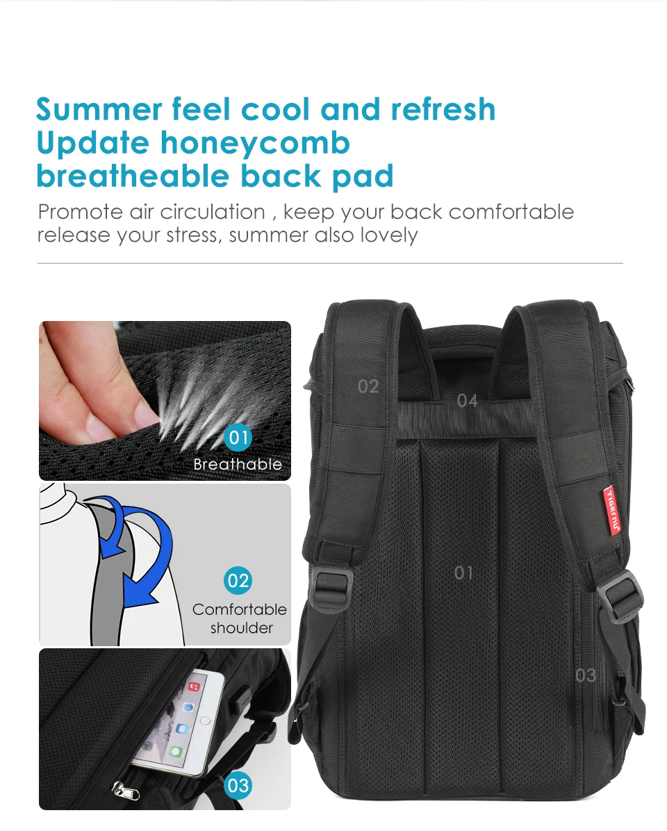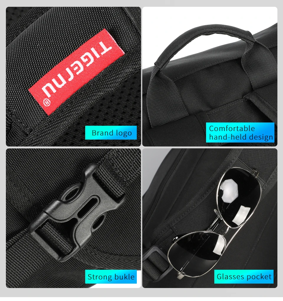 Рюкзак Tigernu мужскойженский, спортивный водонепроницаемый с USB-зарядкой и отделением для ноутбука