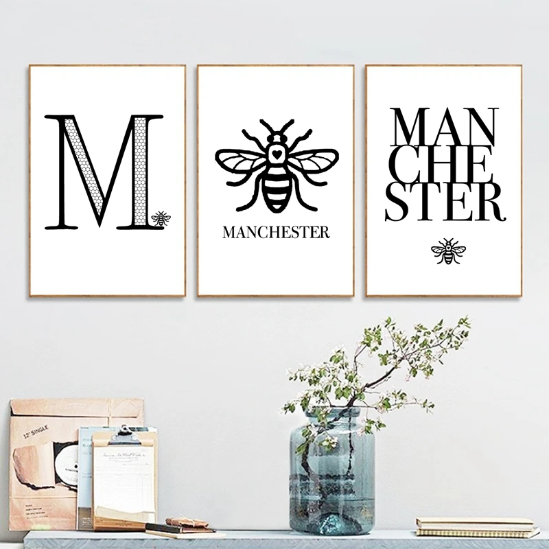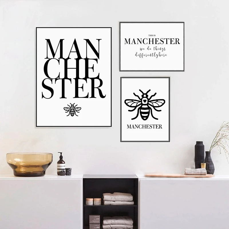Манчестер рабочий пчела холст художественные принты и плакат Манчестер Цитата Персонализация современный город настенные картины декор для гостиной