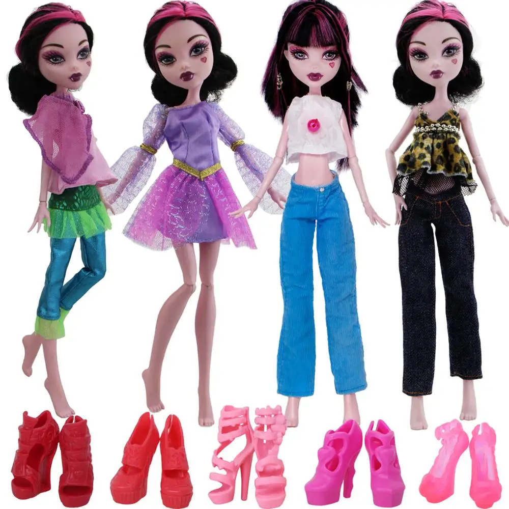 1 комплект, платье, юбка, штаны, джинсы, брюки, повседневная одежда, сандалии на высоком каблуке, аксессуары, Одежда для кукол Monster High, игрушки