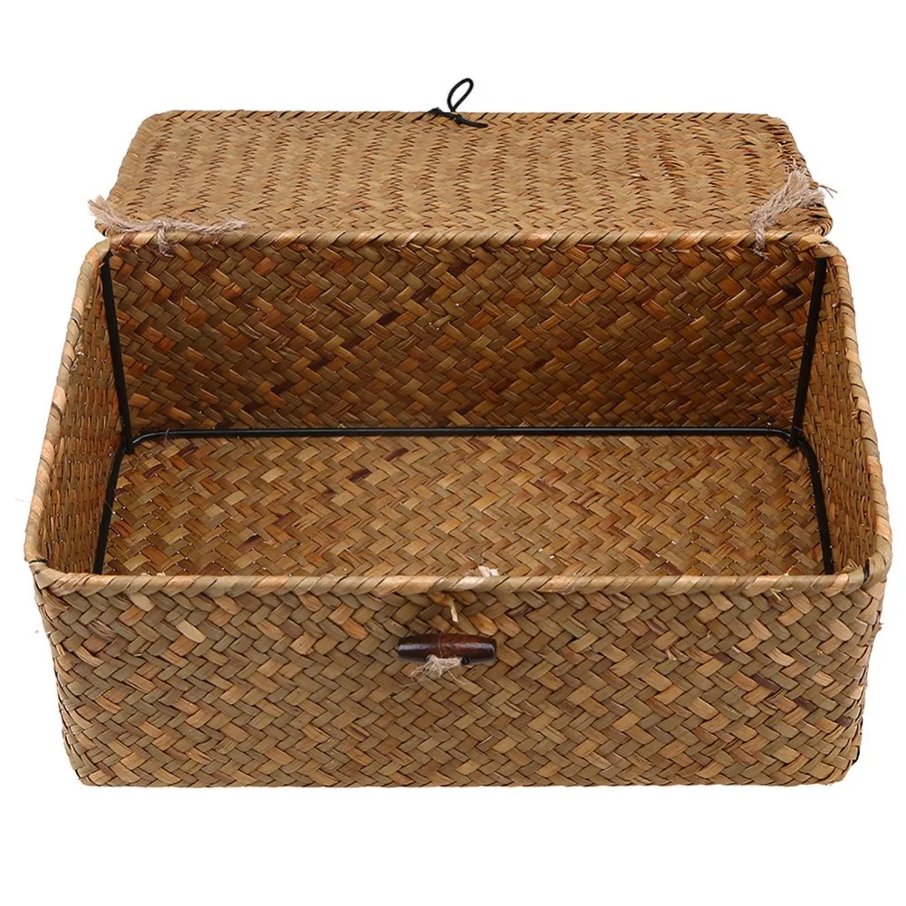 Ротанговая коробка для хранения с крышкой ручная коробка для ювелирных изделий Плетеный органайзер для макияжа пищевые ящики для хранения контейнеров бункеры для детских игрушек